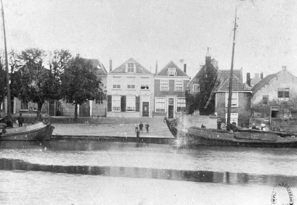 Dorpsgezicht Botter afgemeerd aan de kade; ca. 1920