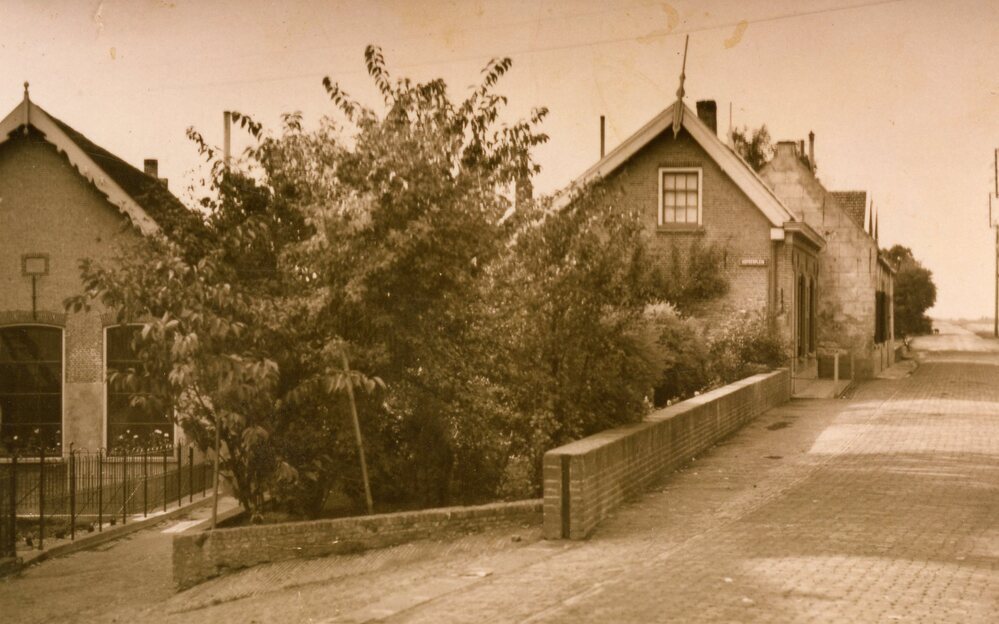 Kijkje op het Hofkesplein, ca. 1955. Links onderaan de oude lagere school
