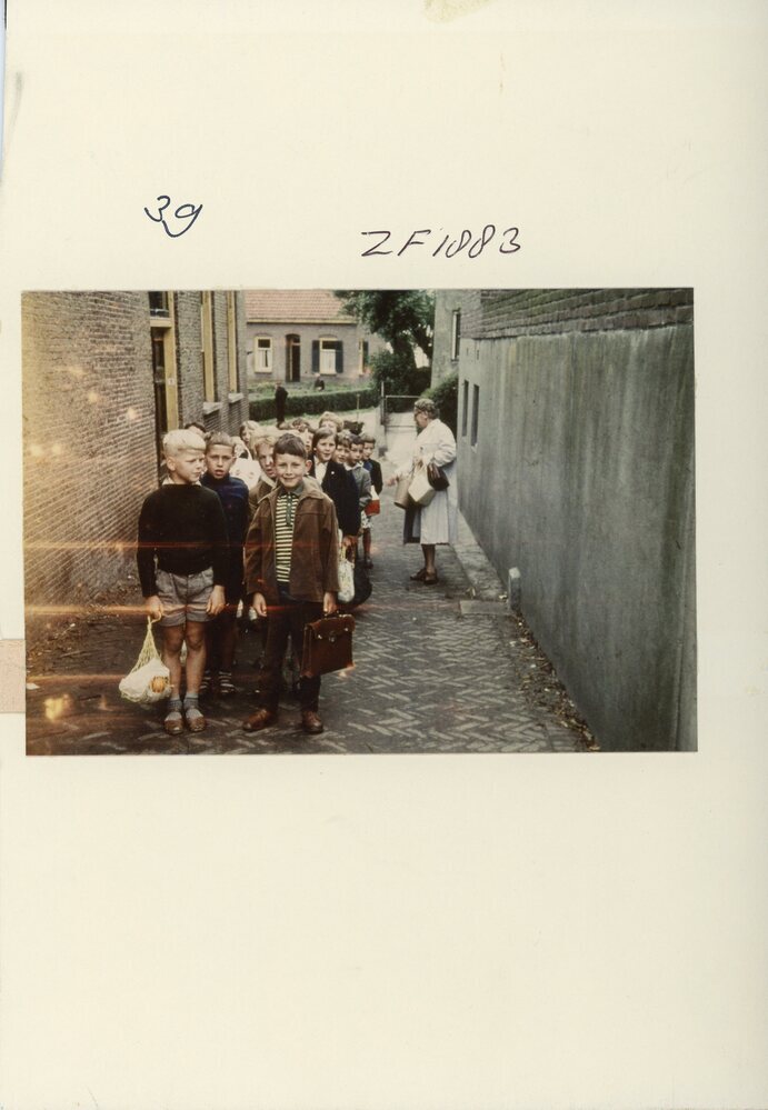Foto Kleur: Schoolreisje , kinderen in de rij .