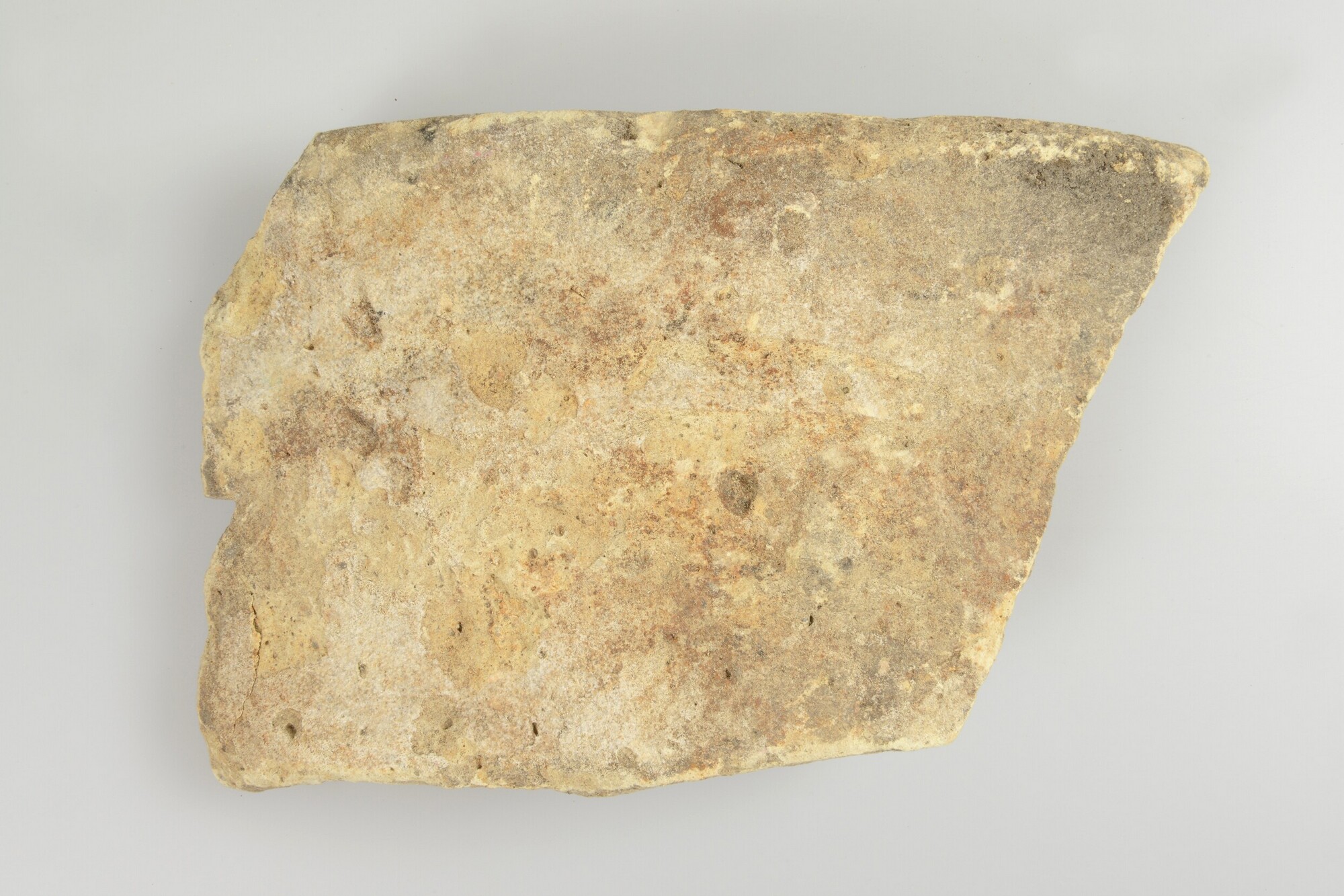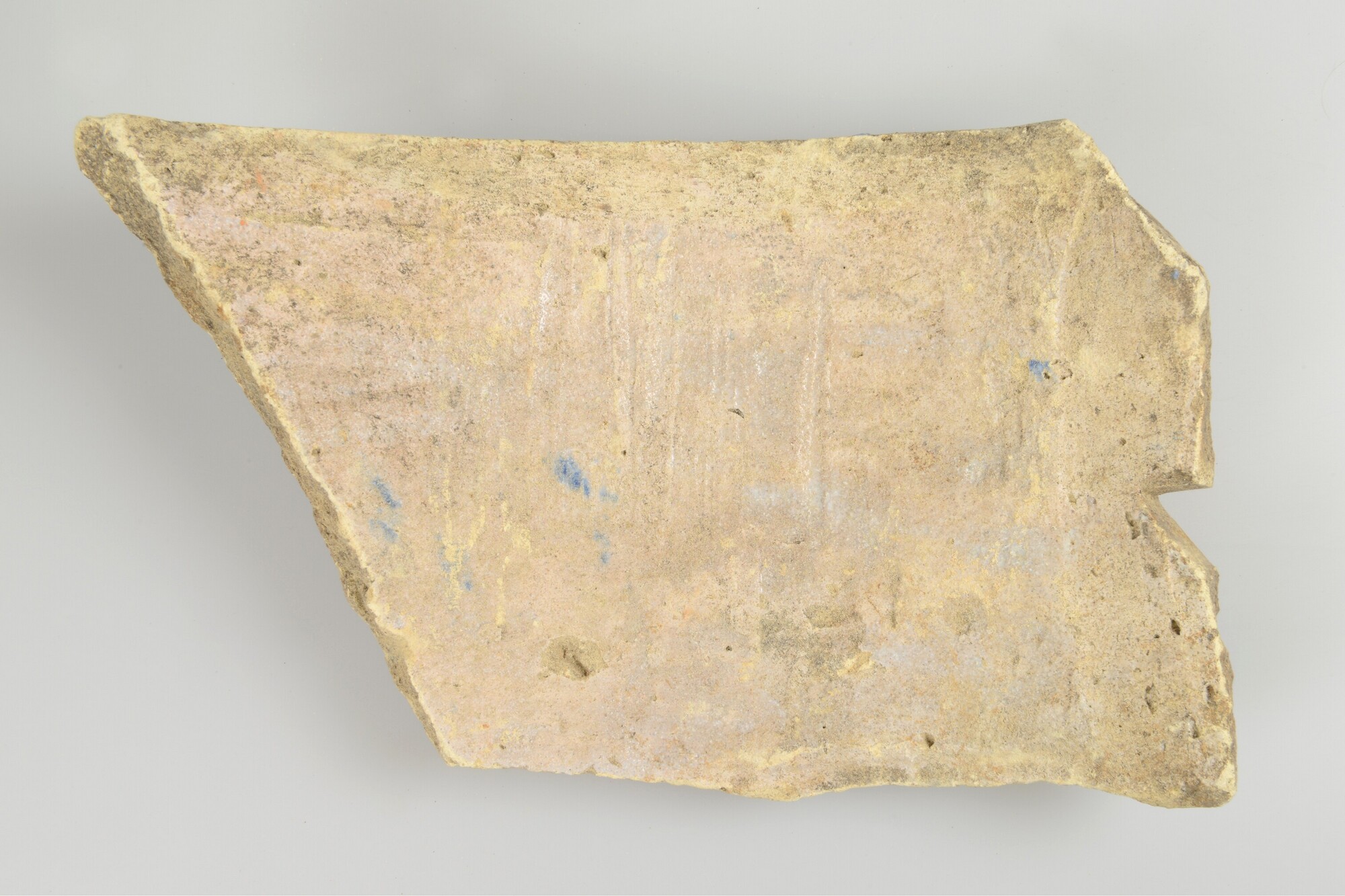 Kokerfragment; productieafval plateelbakkerij; driehoekig gat in wand; inwendig resten tinglazuur