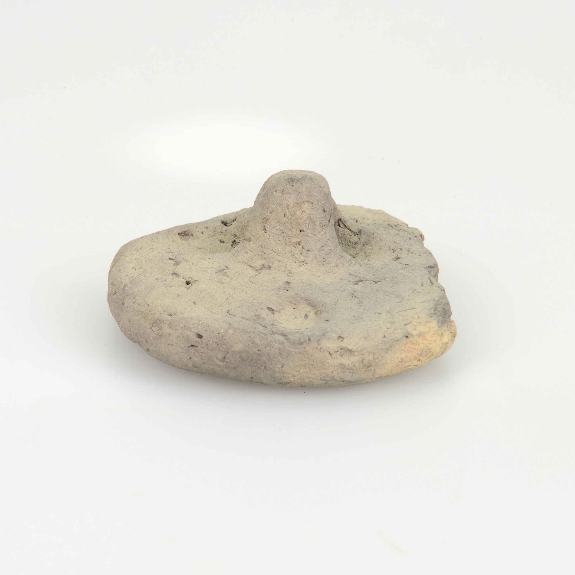 Deksel; inheems-Romeins aardewerk; vlakke schijf met knop; organische magering