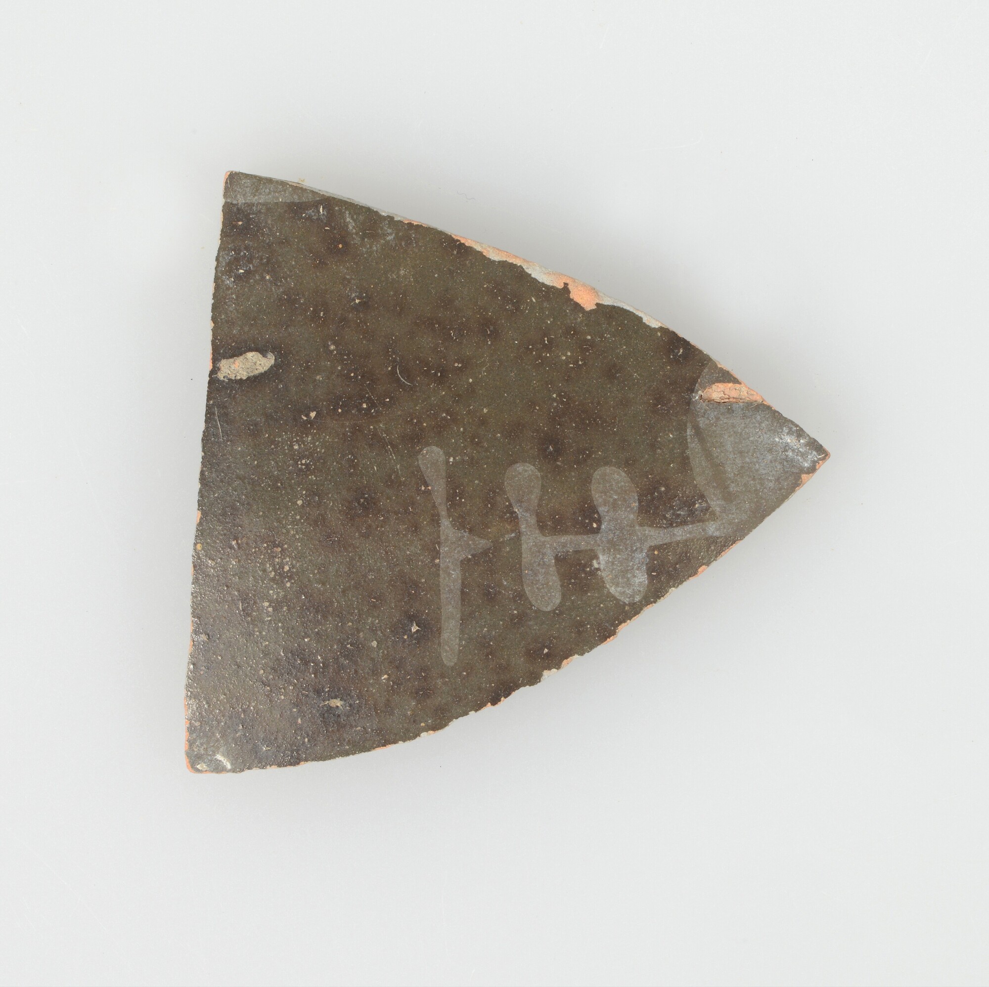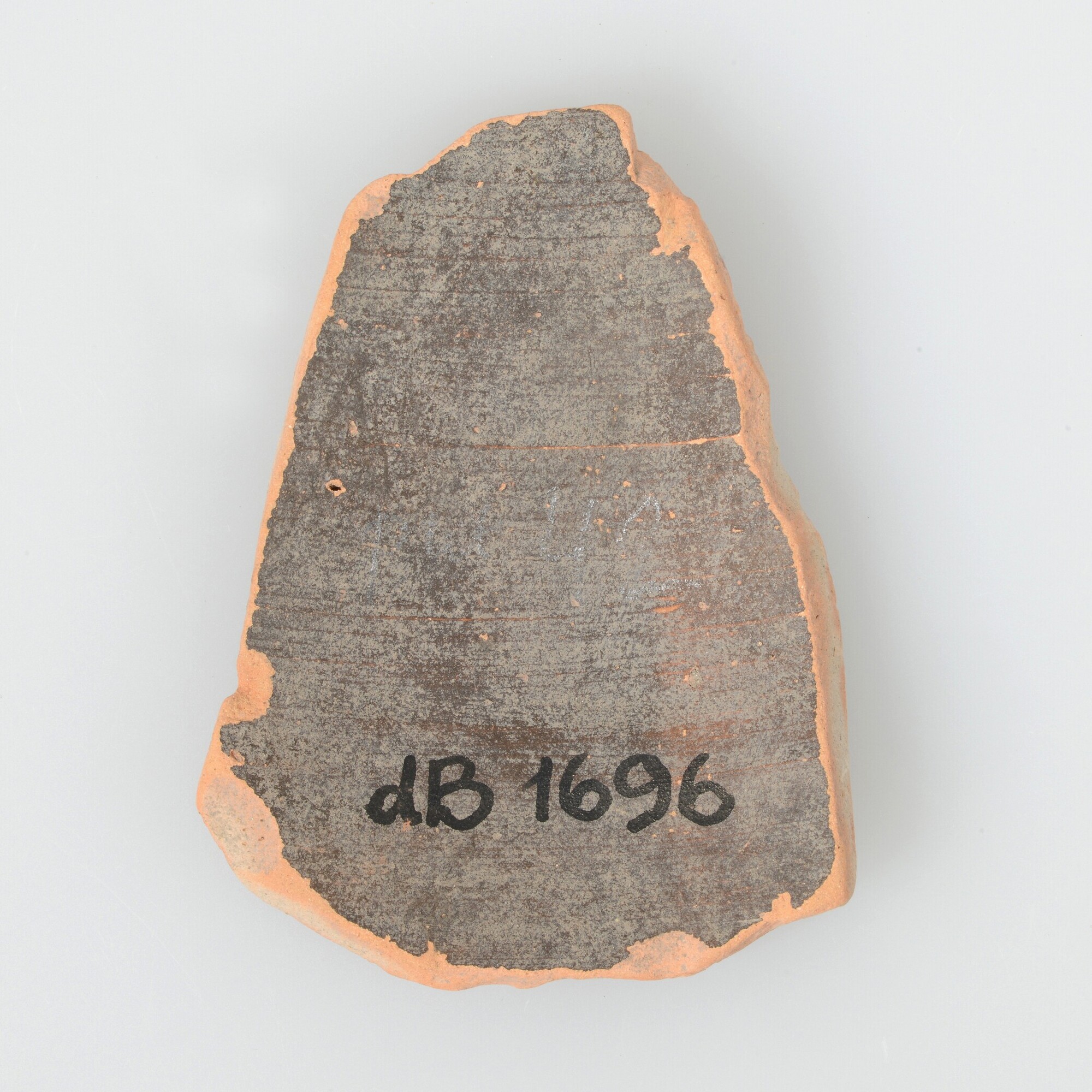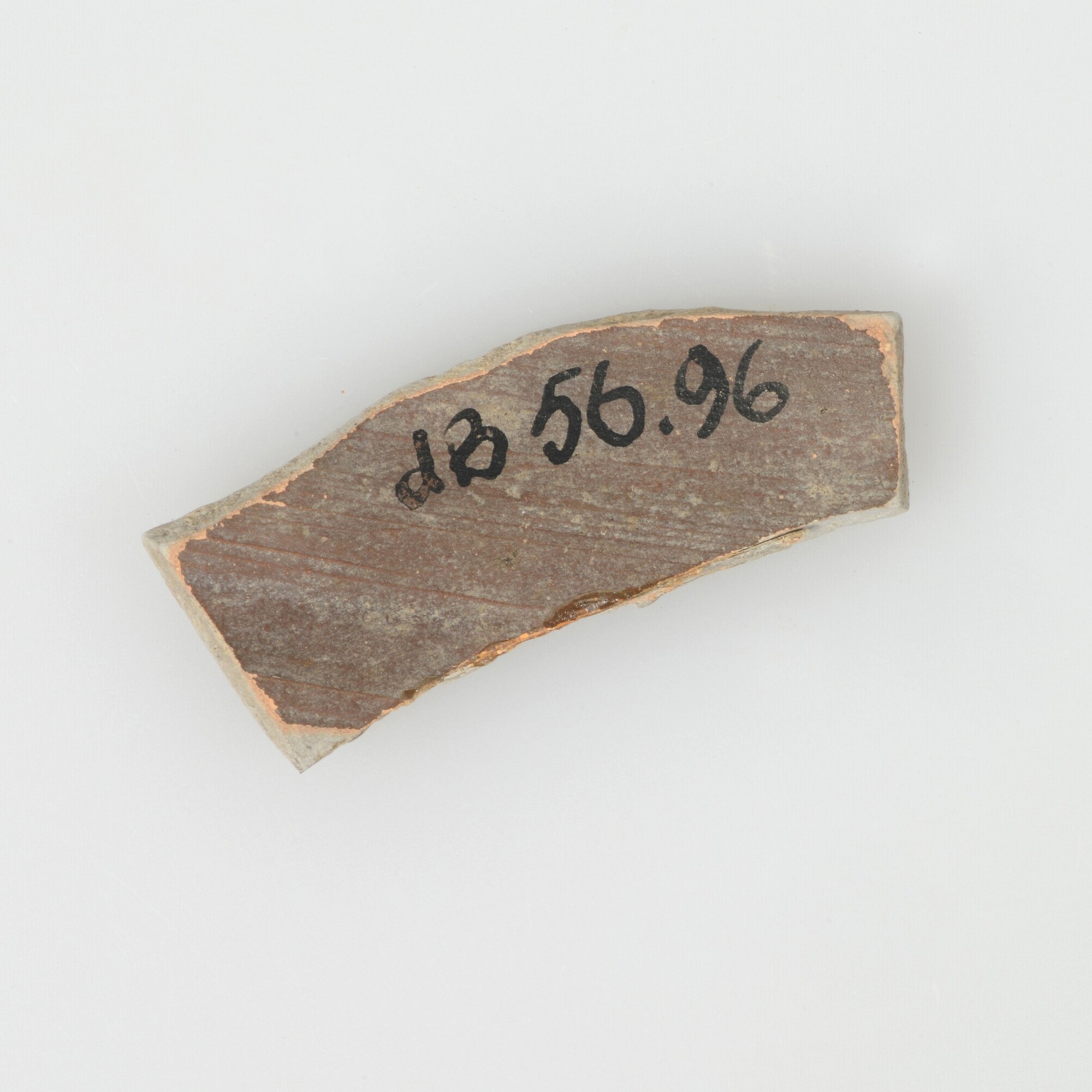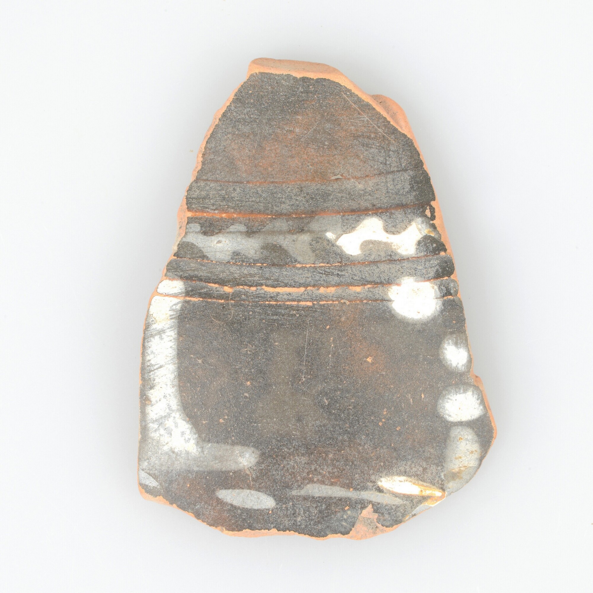 Spreukbeker; geverfd aardewerk; vier wandfragmenten met barbotineversiering