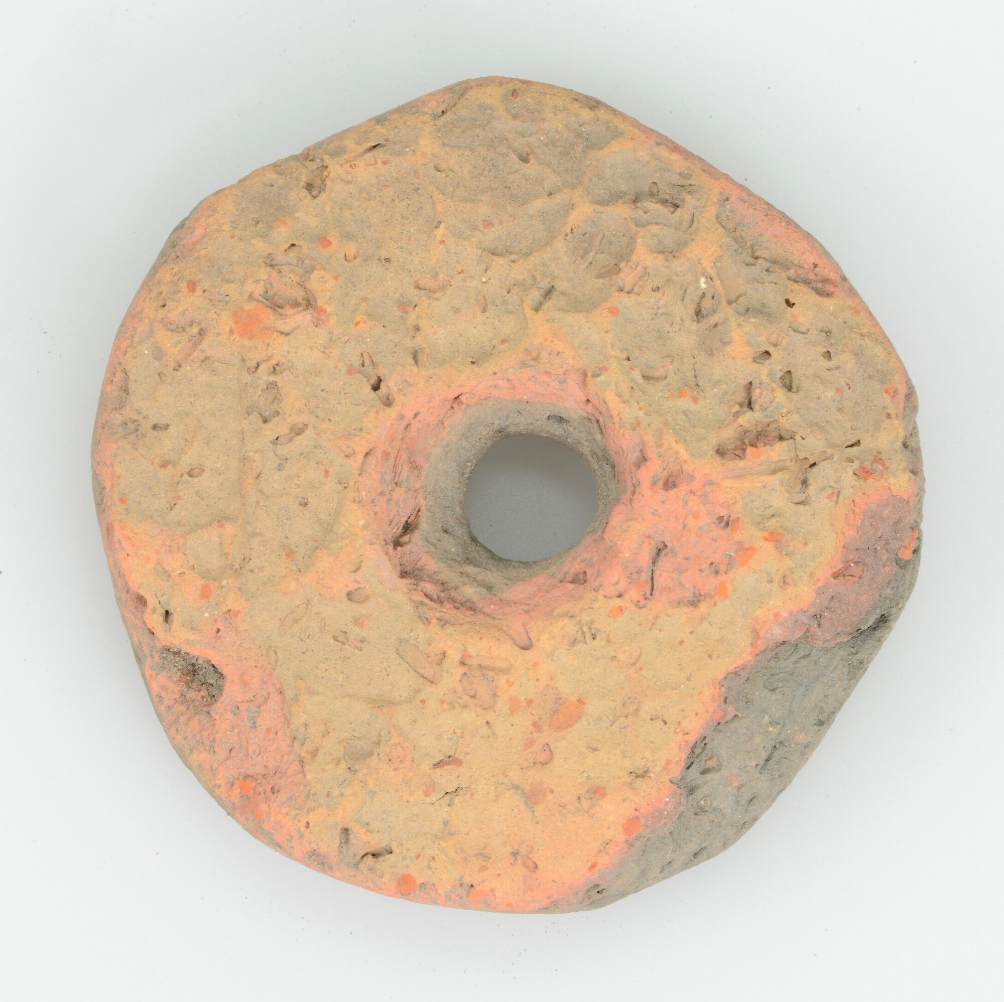 Spinsteen; type XIII; inheems-romeins aardewerk; vervaardigd uit een wandscherf