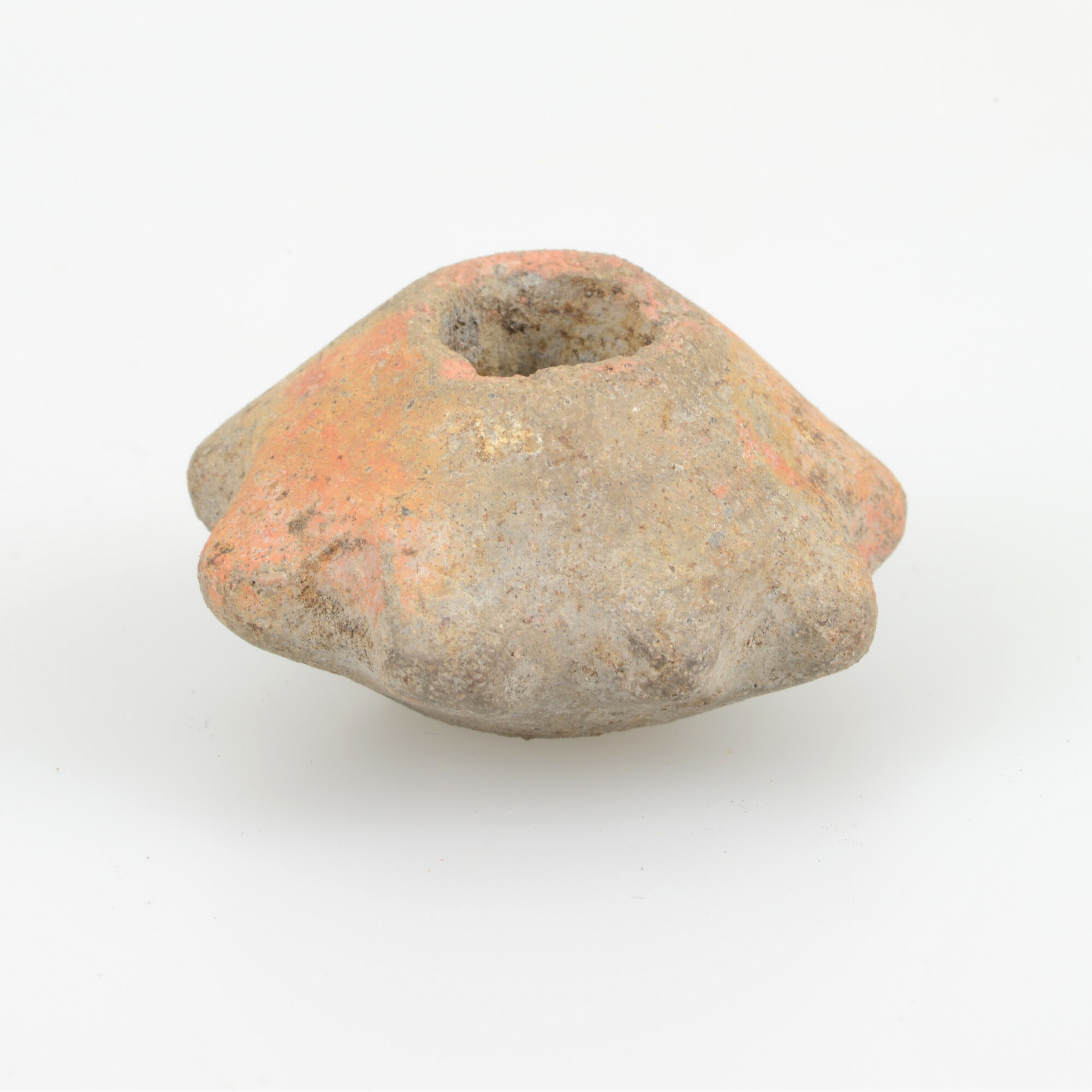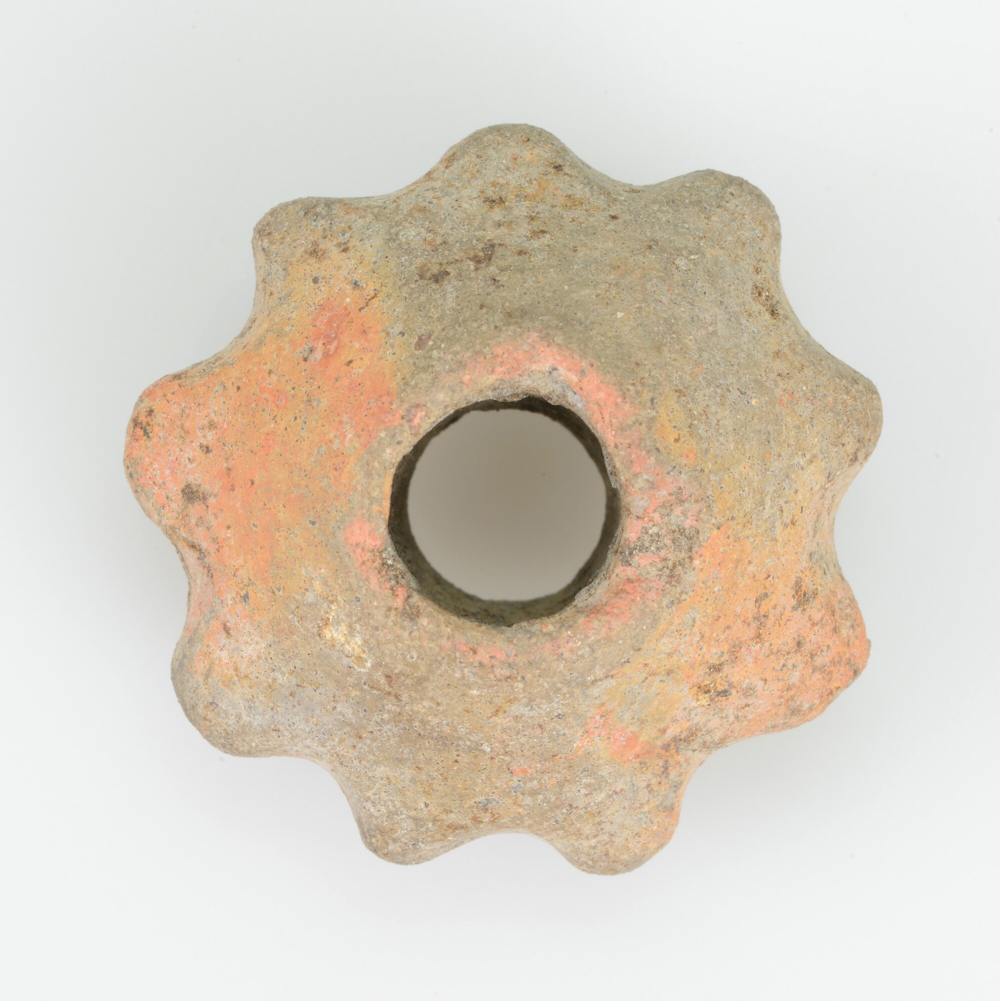 Spinsteen; inheems-romeins aardewerk; conische spintol met gekartelde rand
