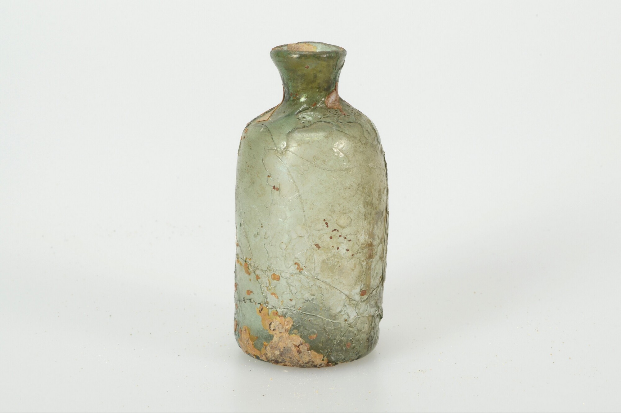 Medicijnfles; gl-fle-11; glas; groen; opgestoken pontilmerk; indoopvorm