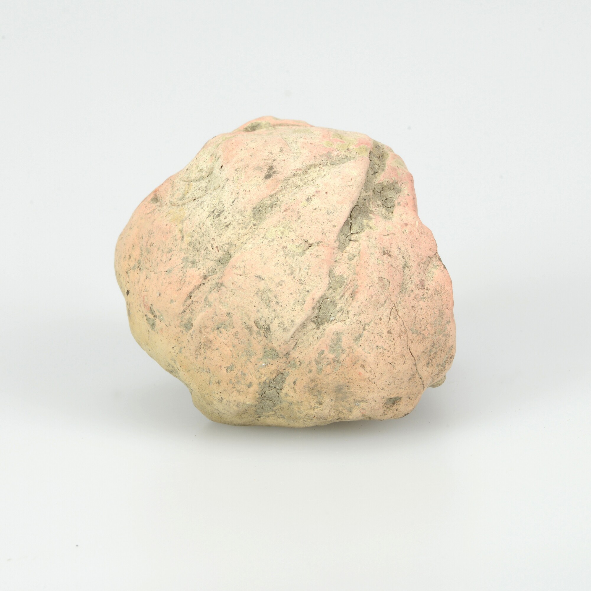 Bolvormig object; onbekende functie; geometrische lijnversiering; rossig/donkergrijs baksel; organische magering