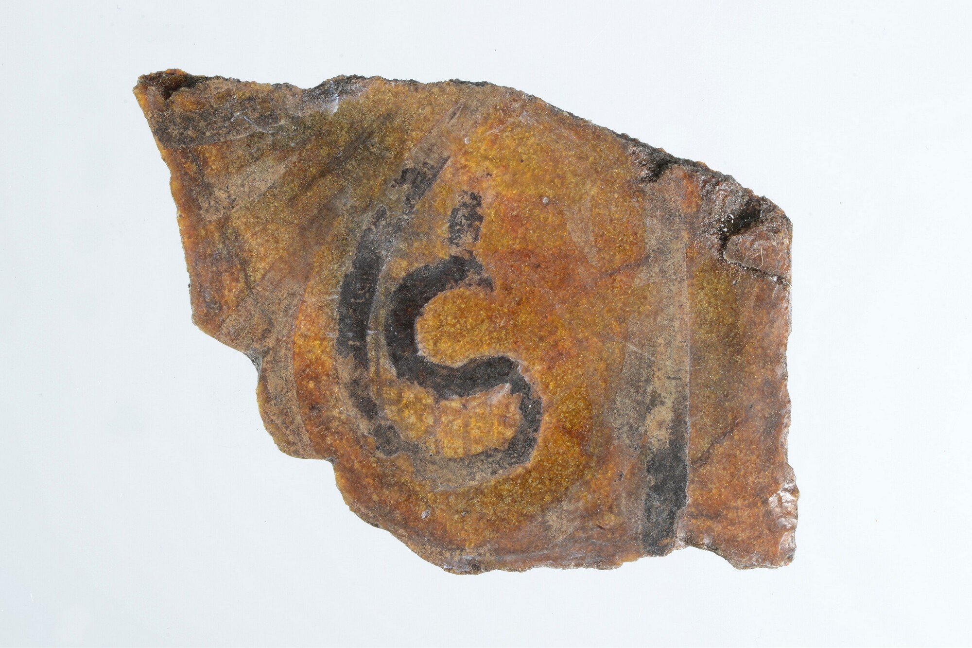 Gebrandschilderd glas; type grisaille; bruin; wafelpatroon