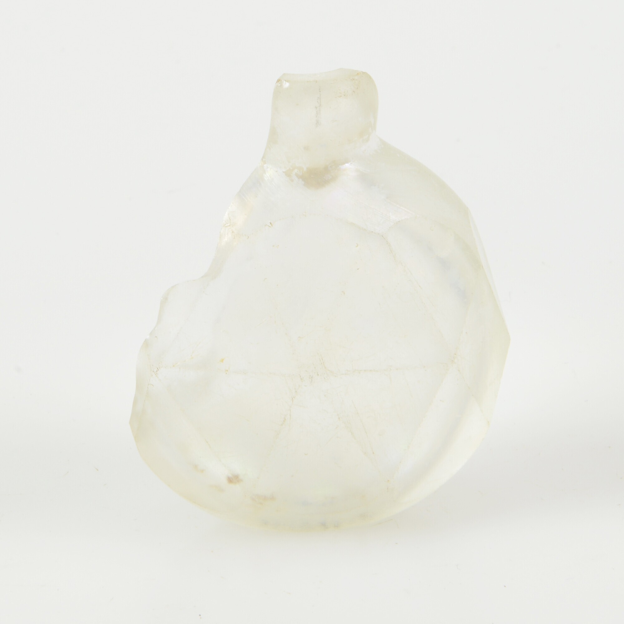 Parfumfles; gl-fle-45; kleurloos; ronde, platte vorm met driehoekig geslepen vlakken