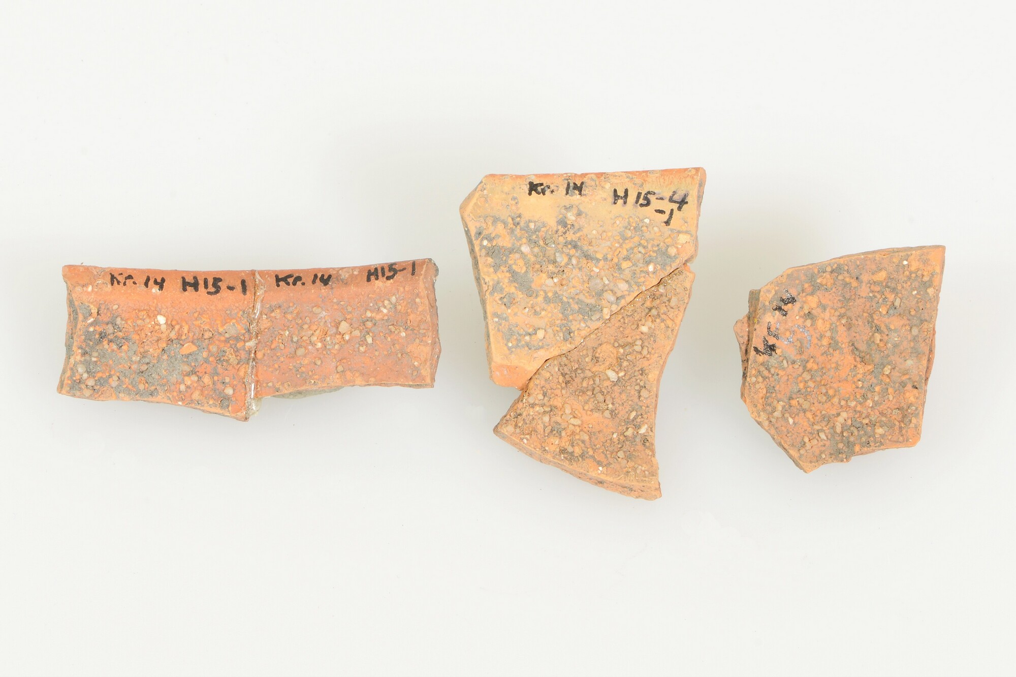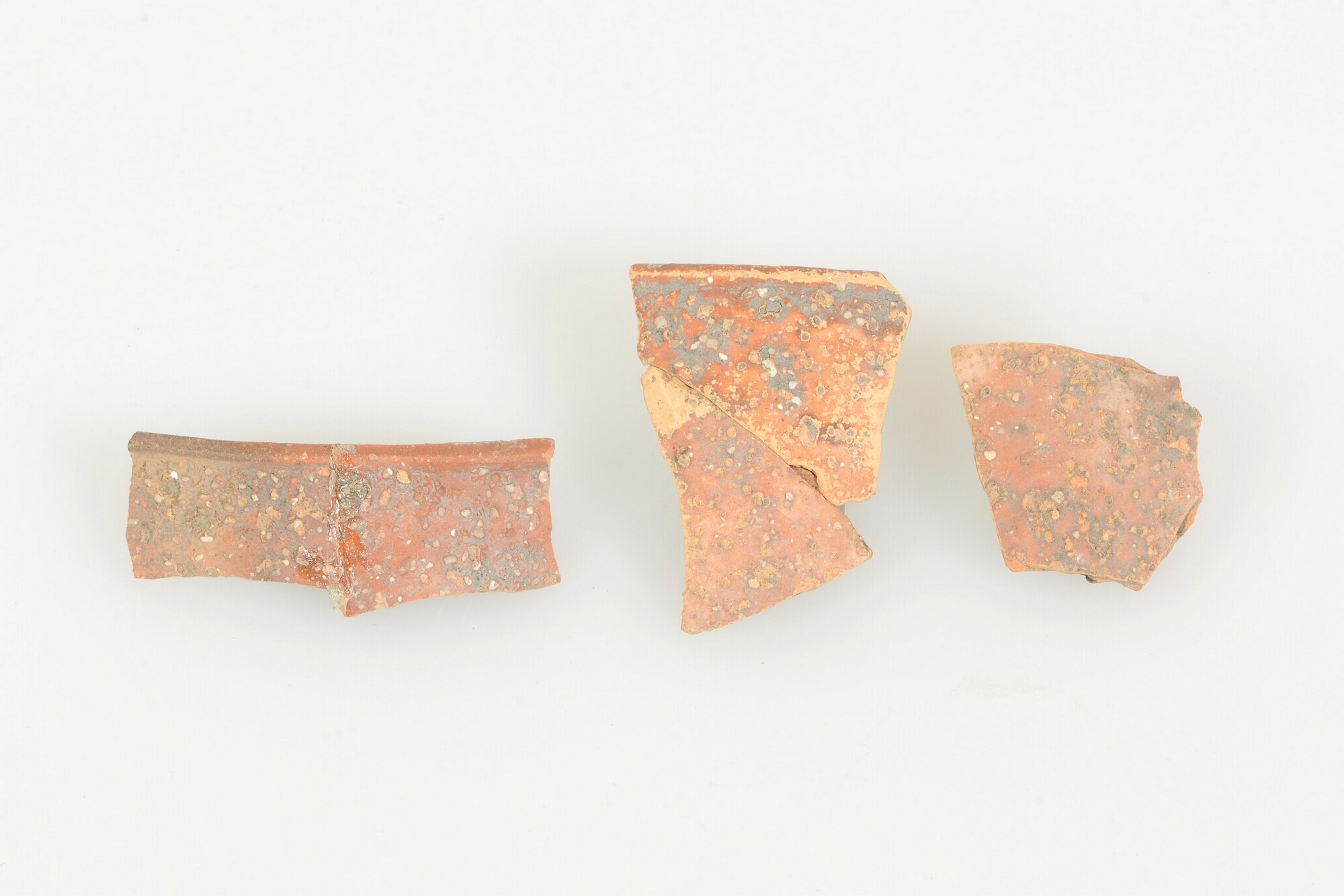 Kom; geverfd aardewerk; type Hofheim 22; halfbol kommetje op een lage standvoet; zandbestrooiing op de wand; rode engobe (techniek A); vondstomstandigheden: 1964/1965