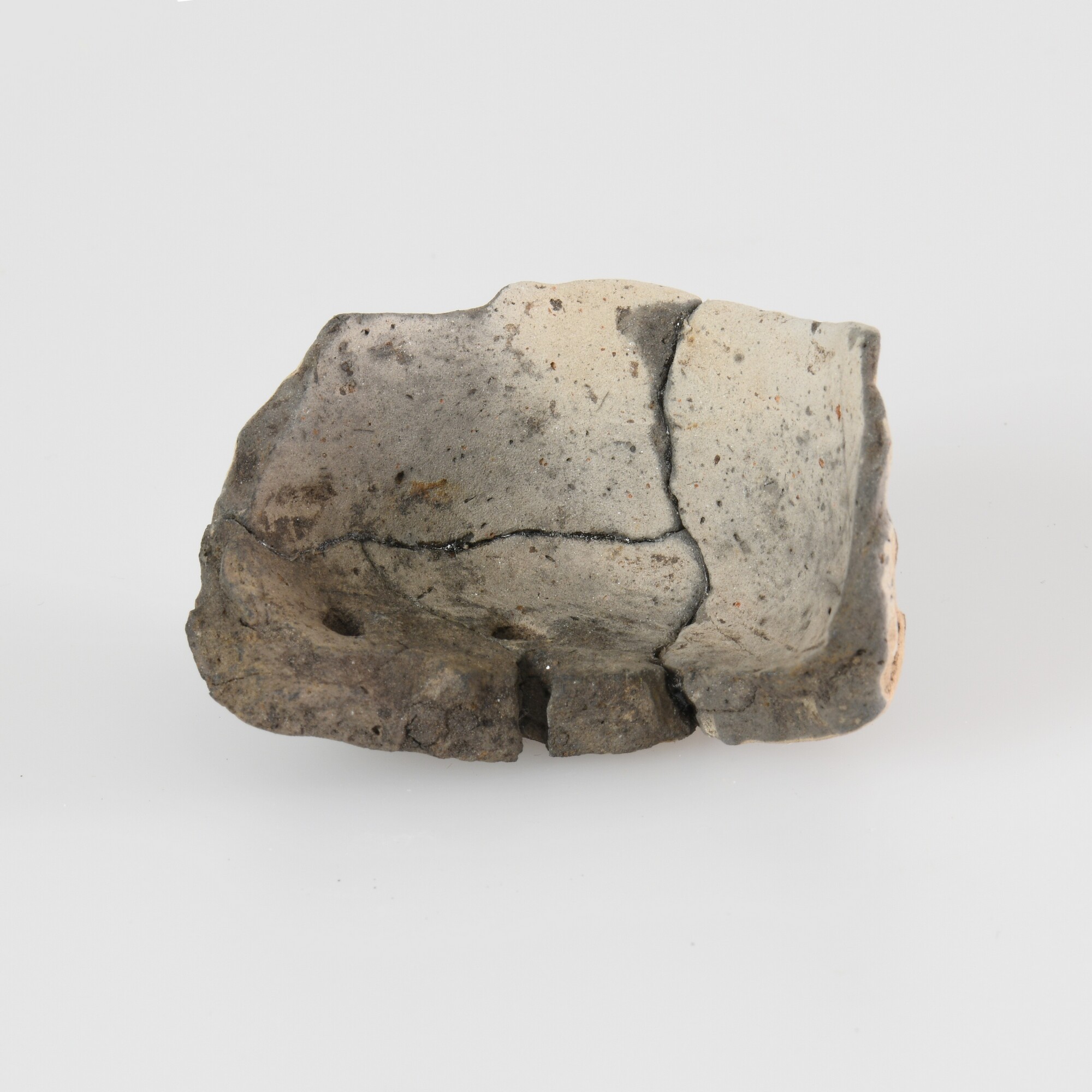 Bak; Hoogkarspel-Jong aardewerk; miniatuur; eenledige vorm met rechtopstaande rand; fijne potgruismagering; doorboringen in de bodem