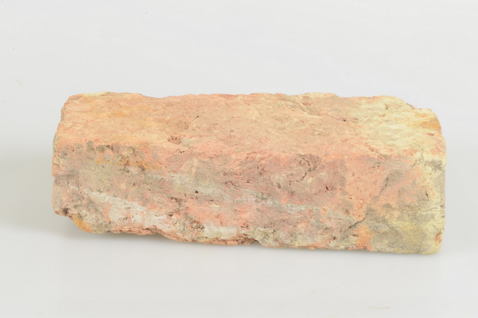 Baksteen; roodbakkend; schuin gevormd of behakt; gewicht: 3,2 kg; vondstomstandigheden: afkomstig van waterput, in talud ten noordwesten van vijver, 1973