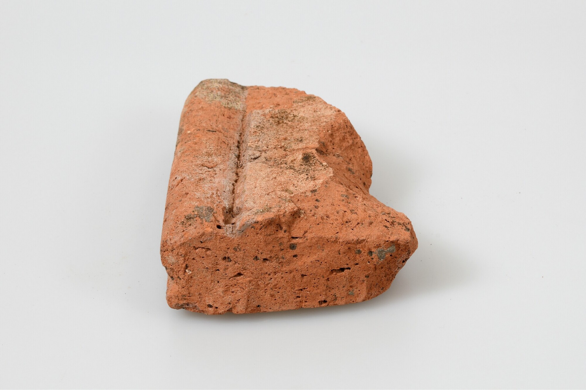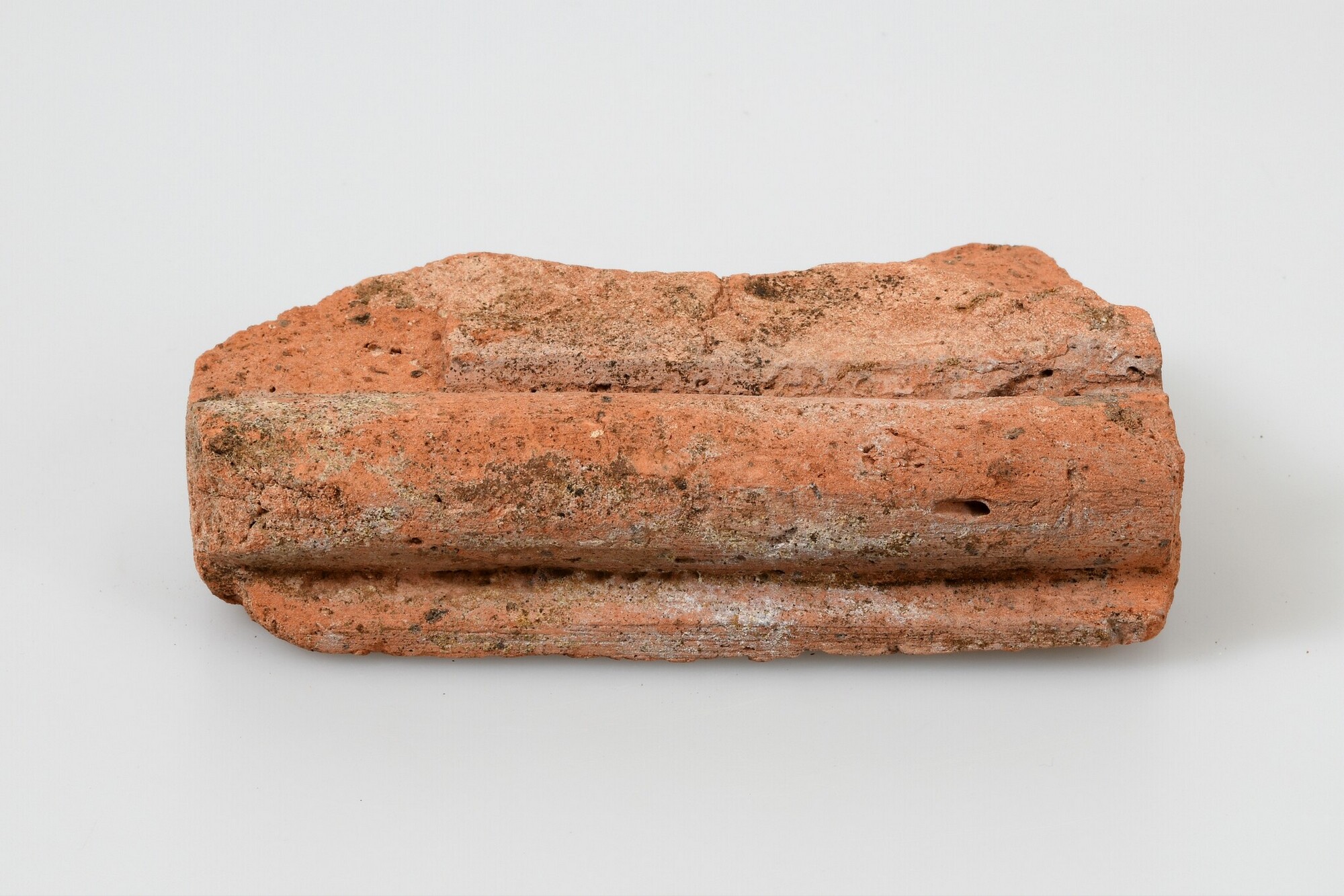 Profielsteen; baksteen; roodbakkend; sierlijke richel; onderdeel van venster of deurkozijn