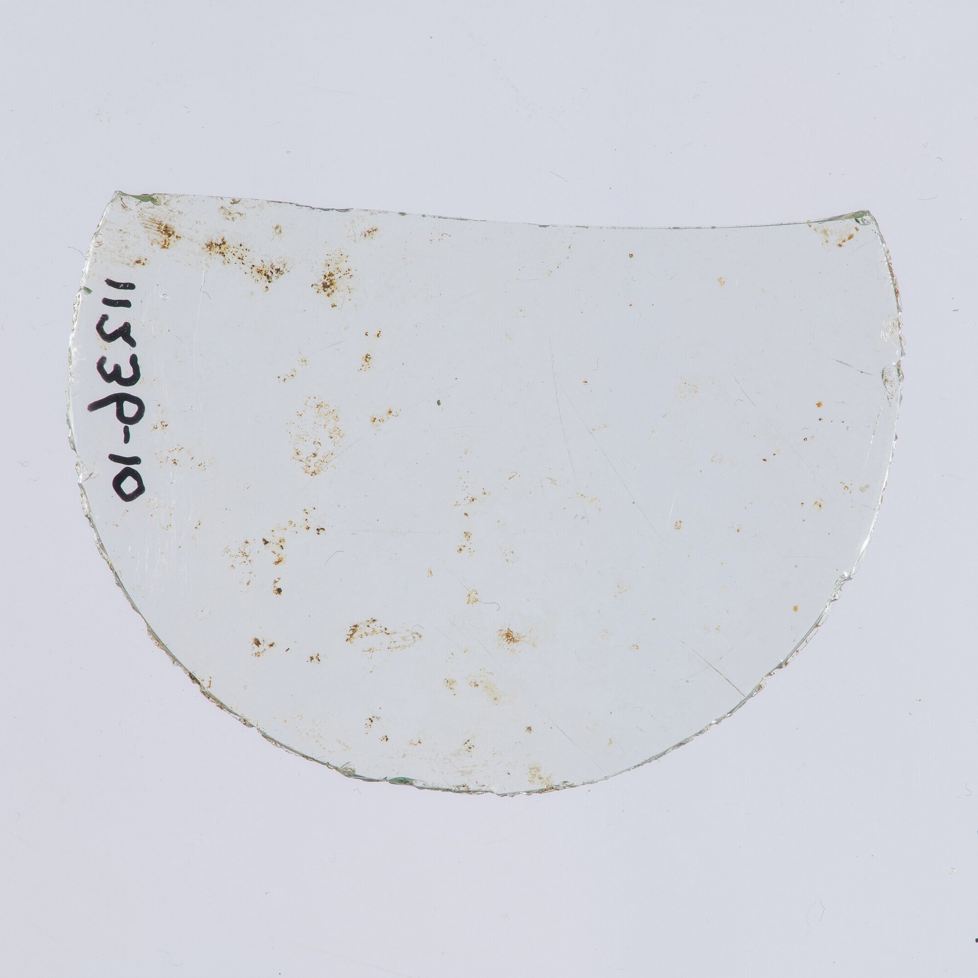 Brillenglas; bijna kleurloos, iets lichtgroen glas; ongeslepen