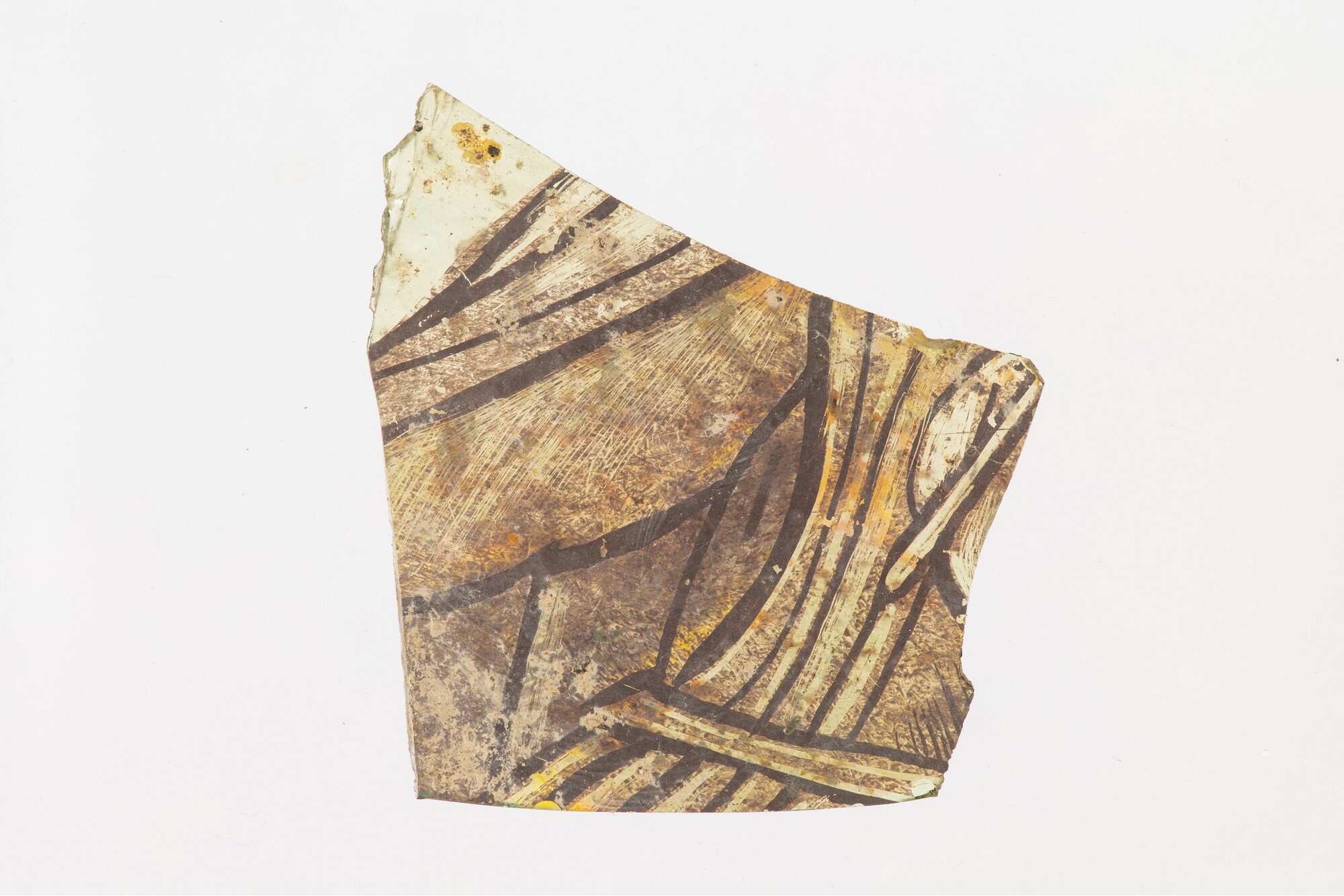 Vensterglas; lichtgroen; gebrandschilderd glas: boot of kleding?