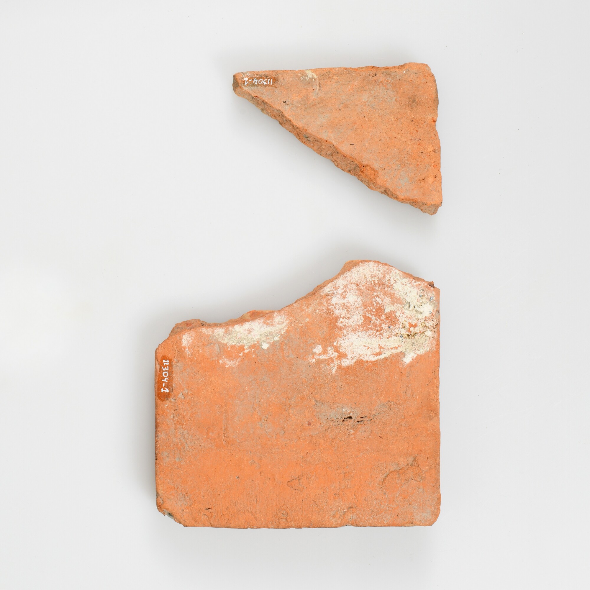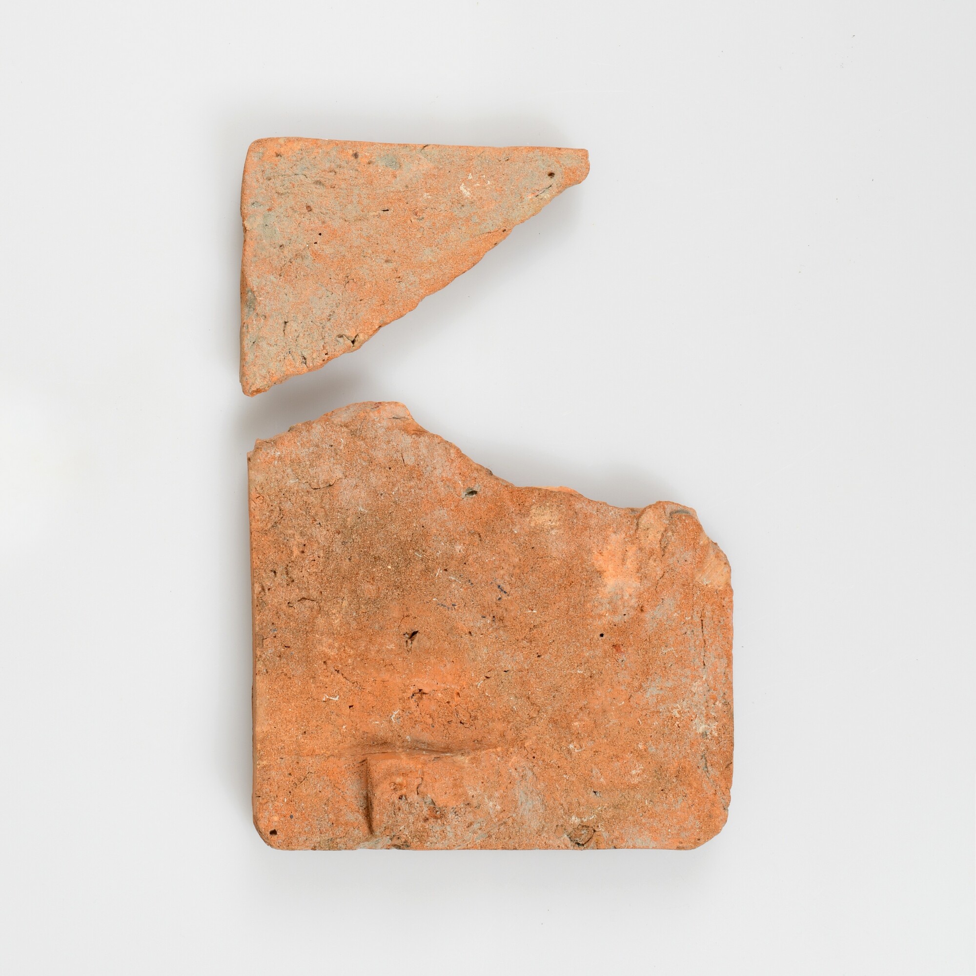 Daktegel; ongeglazuurd roodbakkend aardewerk; rechthoekig exemplaar met vierkante nok