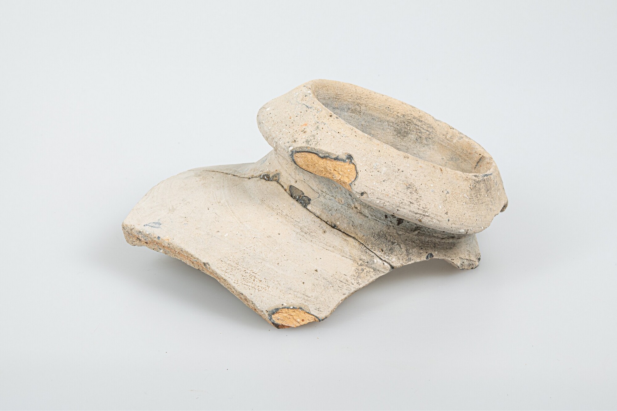 Amfoor (randfragment); ib-amf-; zware kraagrand; Iberisch aardewerk; ongeglazuurd; herkomst: vermoedelijk Sevilla, Spanje