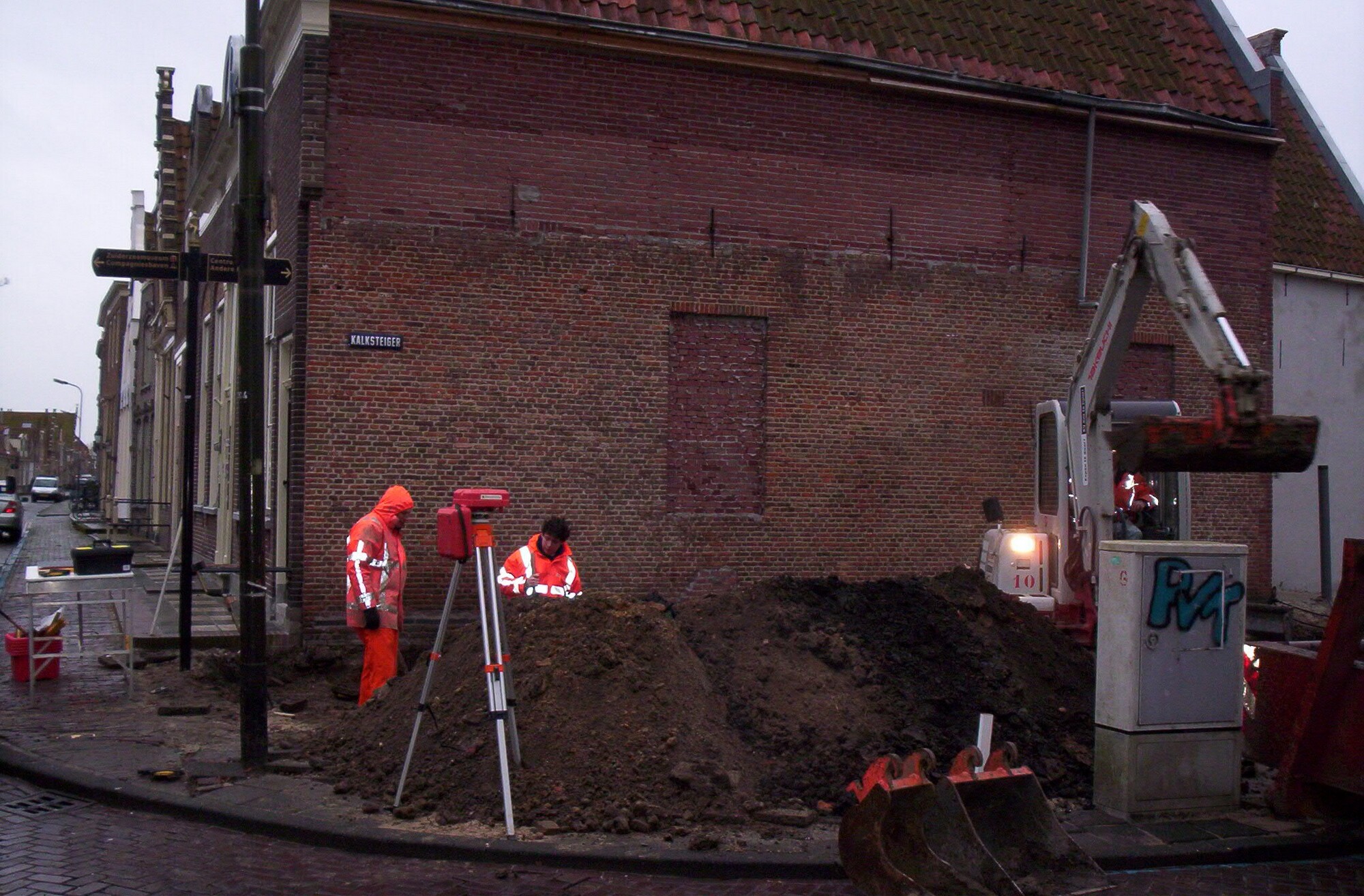 In 2008 vond een opgraving plaats op de hoek van de Breedstraat en Kalksteiger in de middeleeuwse stadskern van Enkhuizen waar tot 1954 een huis had gestaan. Het onderzoek vond plaats vanwege de geplande ontwikkeling ten behoeve van woningbouw. Vanaf ca. 50 cm onder het straatniveau is een relatief onverstoorde opeenvolging van kleivloeren aangetroffen, afgewisseld ...