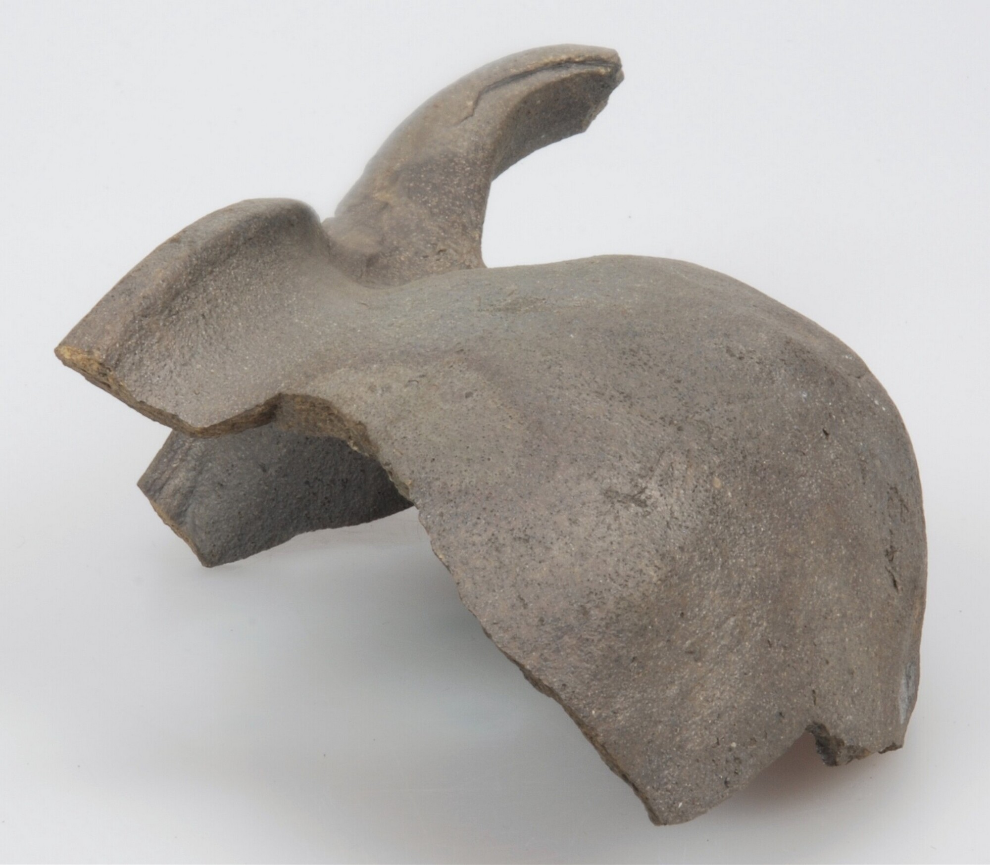 Paffrath-aardewerk; bolvormig archeologisch compleet potje met haakvormig oor en een vierkante rand