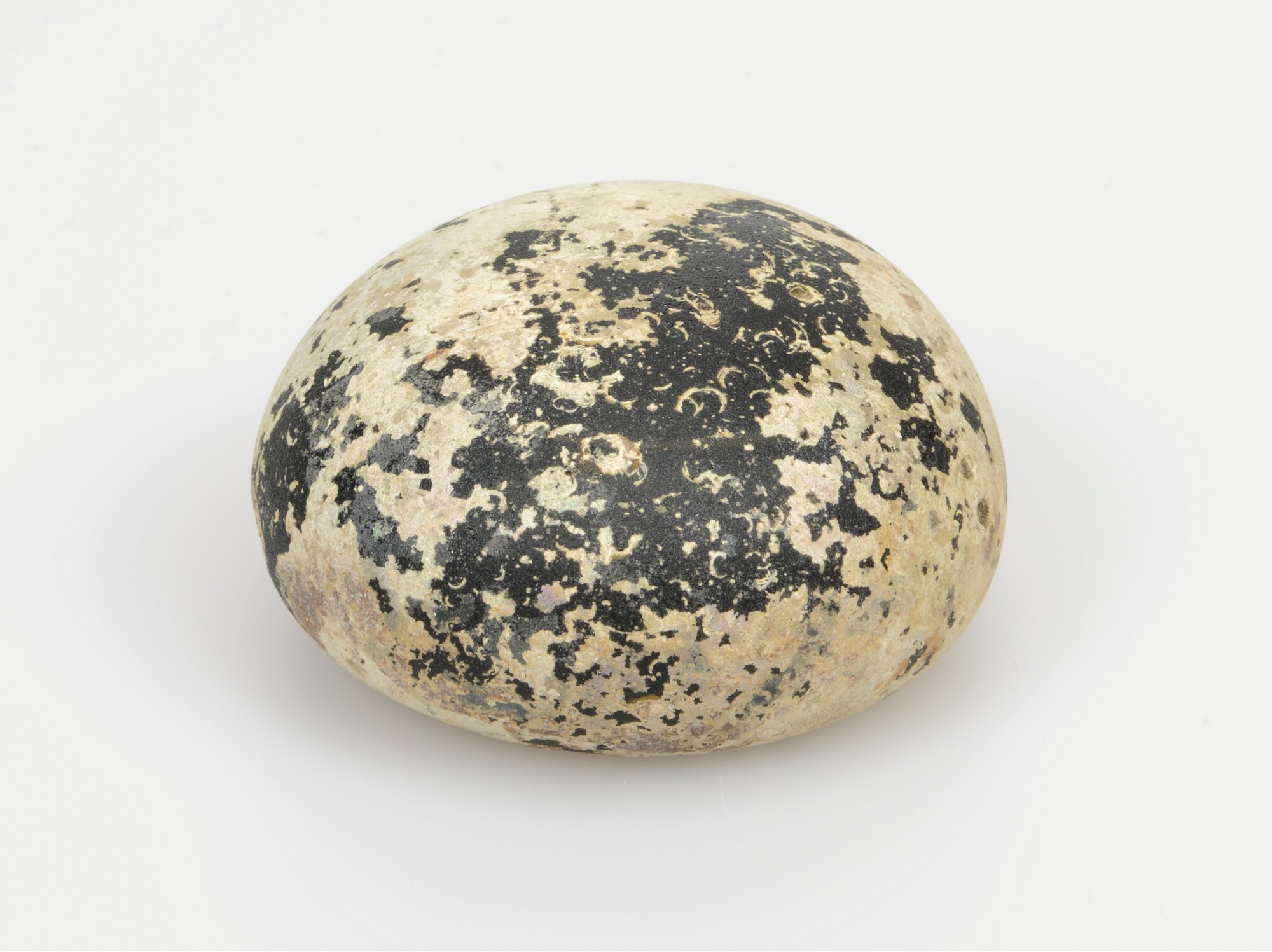 Strijkglas; gl-stg-1; massieve afgeplatte bol met aan de onderzijde een navel met pontilmerk; donkergroen glas; herkomst: Nederlanden of Duitsland