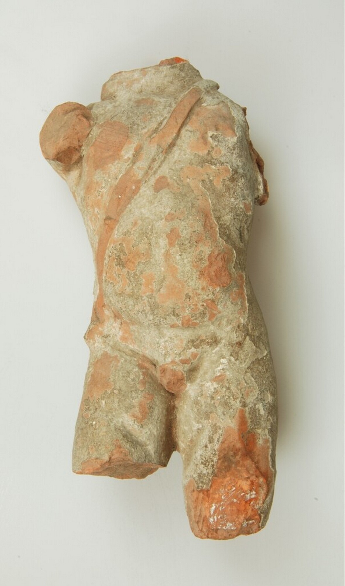 Beeld: r-bee-; roodbakkend; kalkresten; Cupido, riem van pijlenkoker is nog aanwezig
