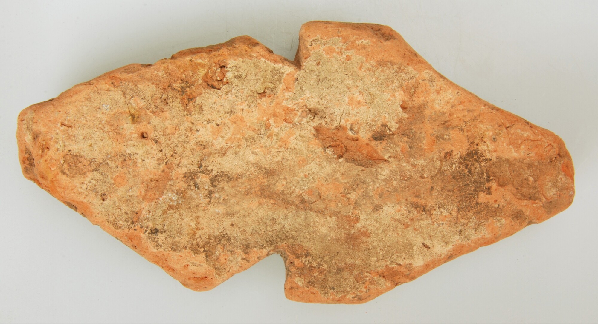 Montant; roodbakkend; onderzijde bevat holle driehoekige profilering, bovenzijde bevat ruitvormige profilering