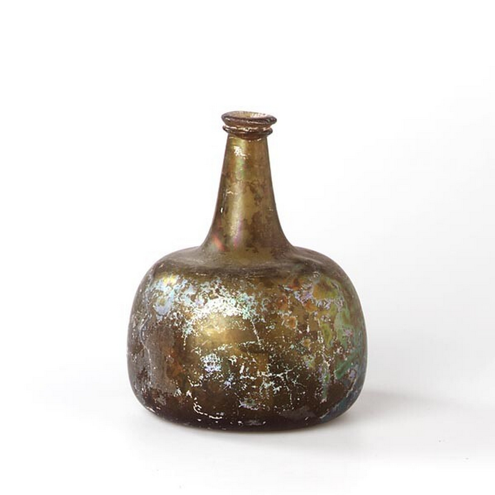 Wijnfles:hoge hals, opgebolde bodem