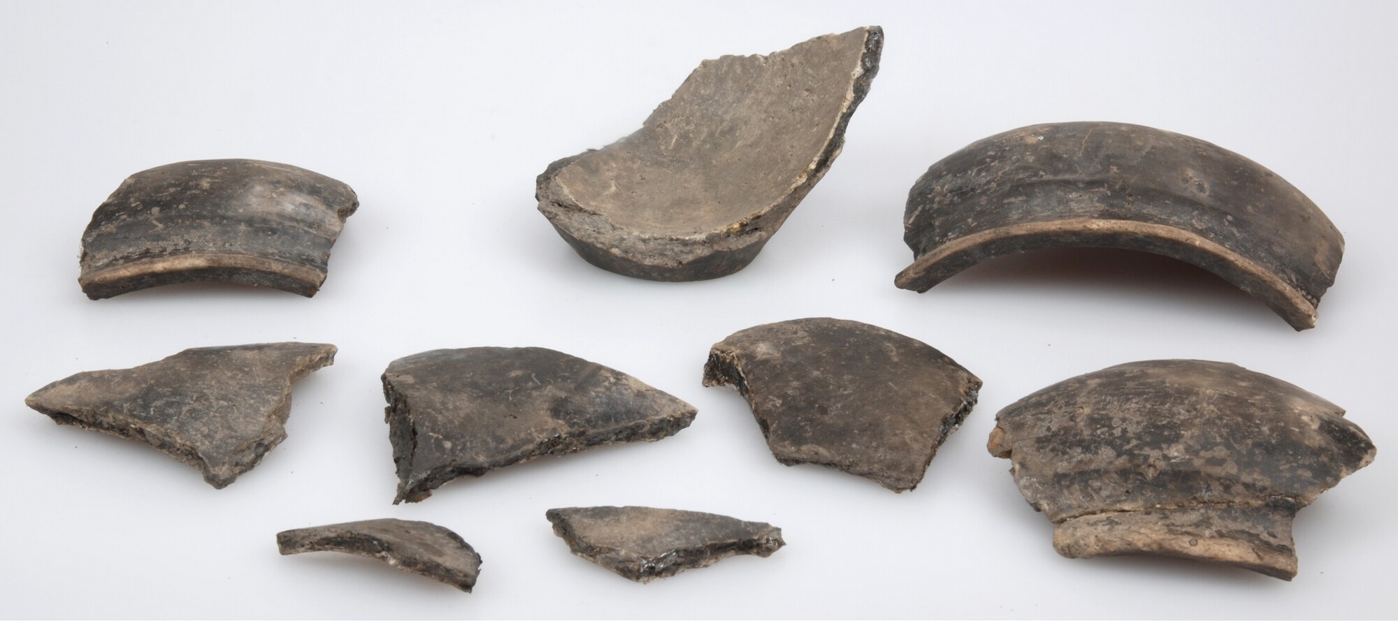 Situla; Diederik type L-IV d; lange gebogen rand met een scherpe overgang van (zeer korte) schouder naar buik. Halverwege de rand bevindt zich aan de binnenzijde een knikje; organische magering