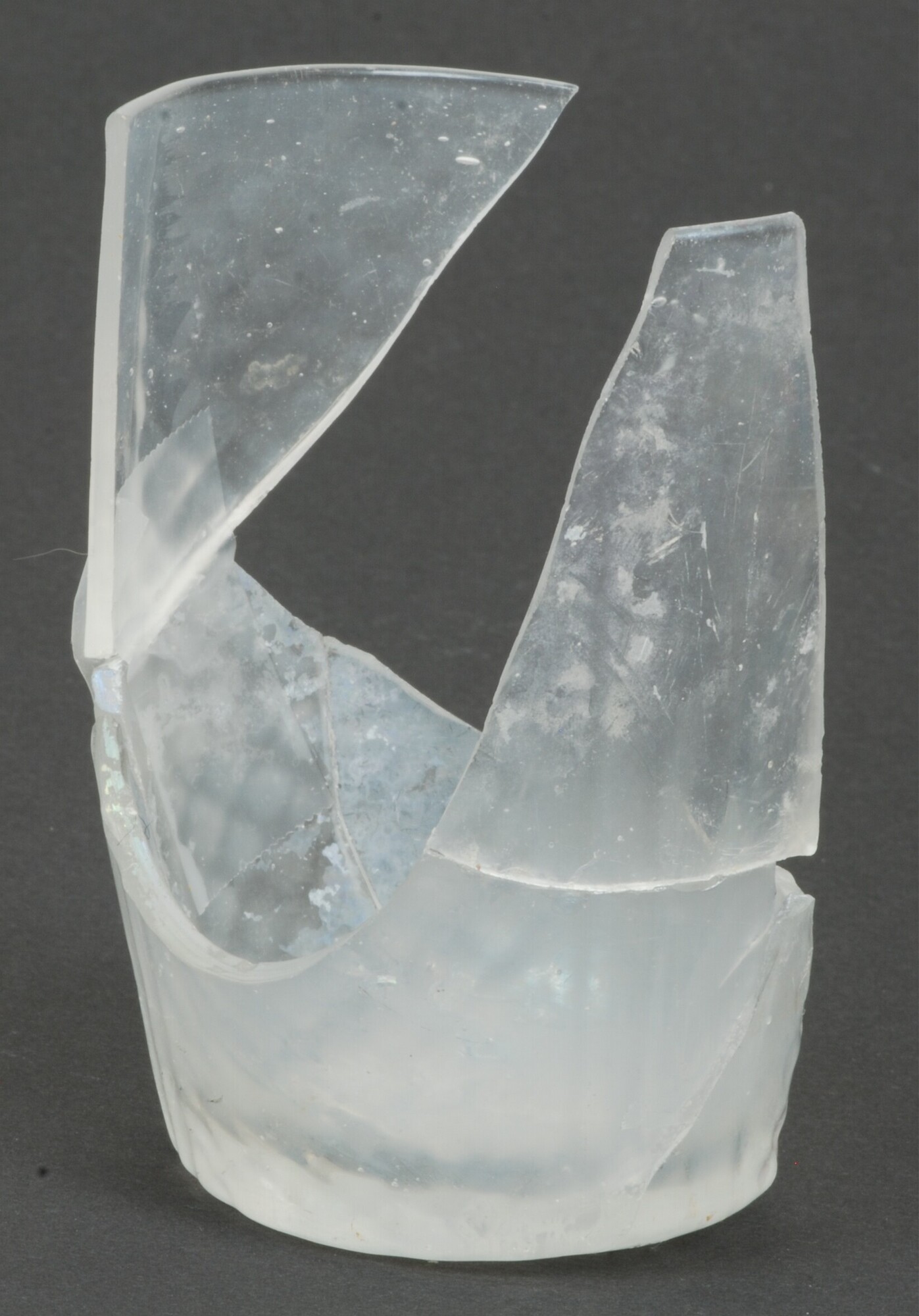 Beker; gl-bek-6B; kleurloos glas; honinggraatmotief (relief); opgestoken bodem met pontilmerk; profiel compleet, conische beker met in relief geblazen honinggraatmotief; herkomst: Nederland ?