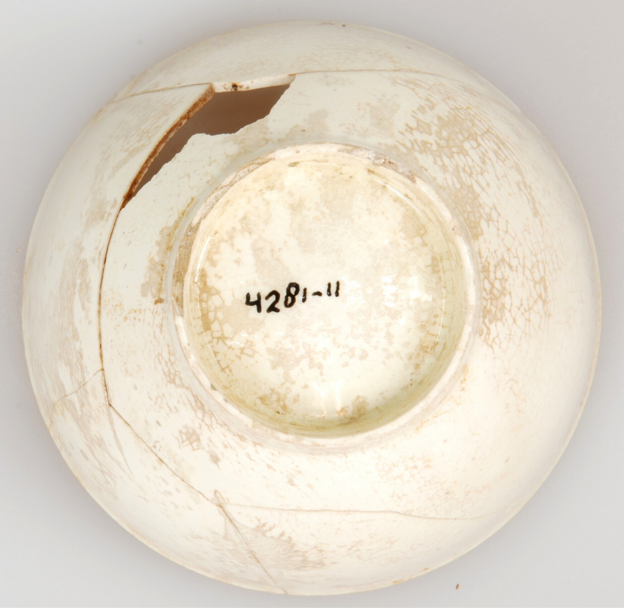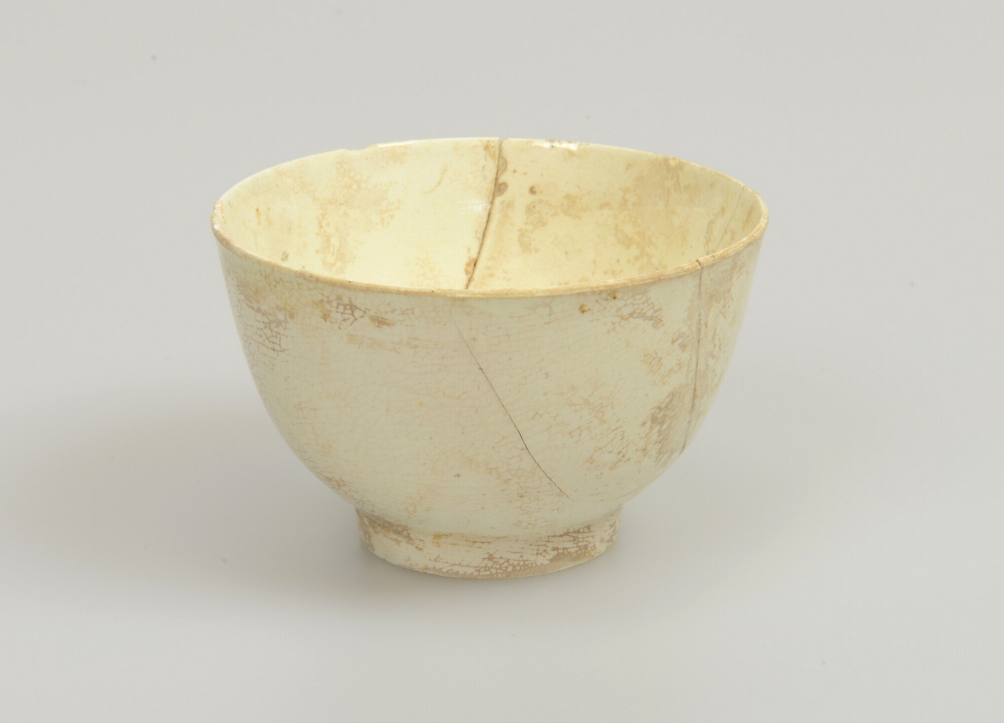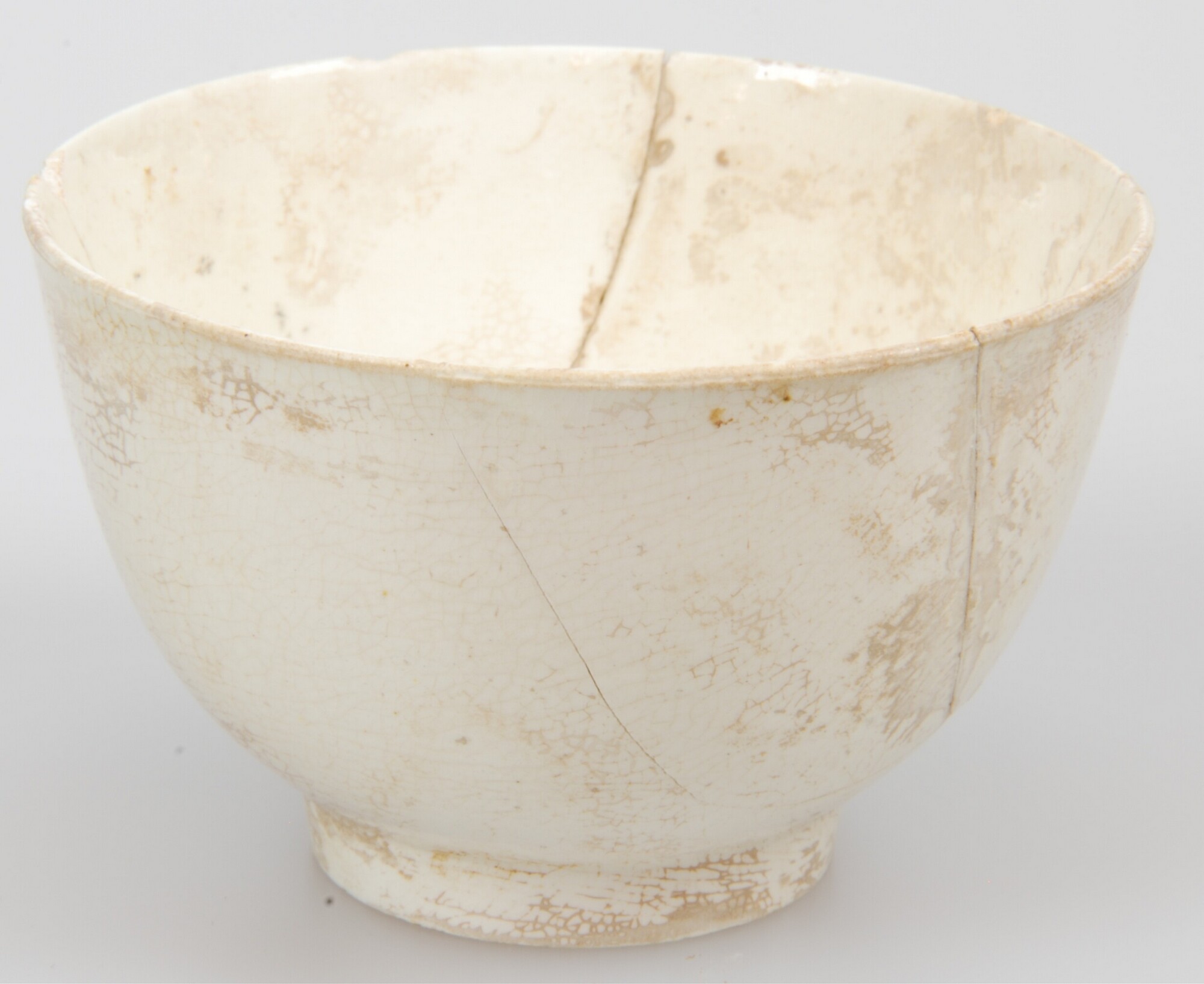 Kop; iw-kop-1; bolle kom met rechte rand, breed uitstaande standring; creamware; loodglazuur; standring; herkomst: Engeland
