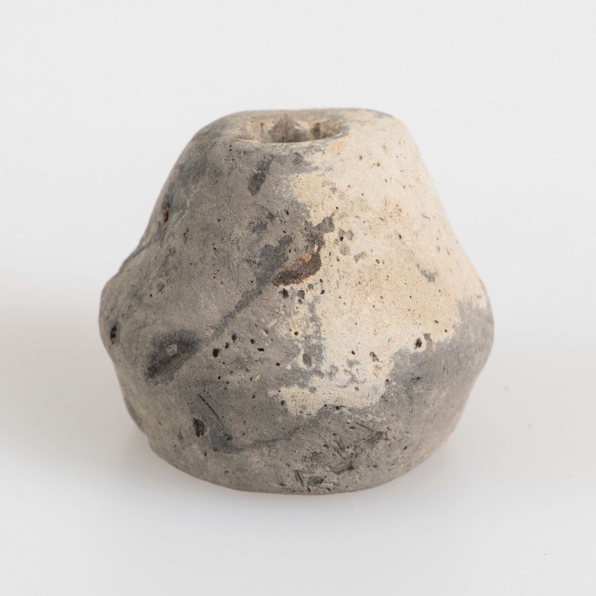Spinklos; inheems-Romeins aardewerk; handgevormd; dubbelconische tol met concave zijden en holle onderzijde (Diederik 2002, type XIIIC)