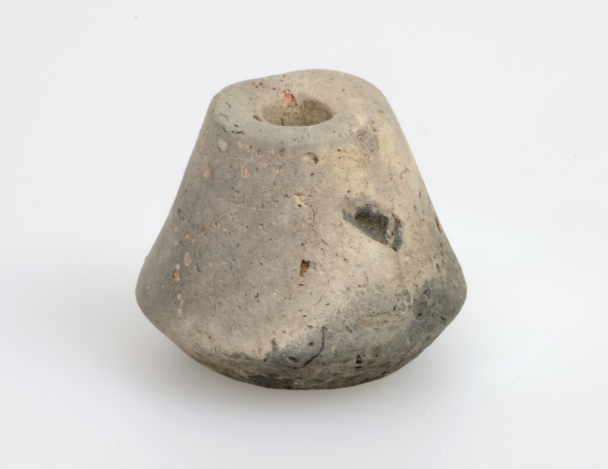 Spinklos; inheems-Romeins aardewerk; conische tol met concave zijden en holle onder- en bovenzijde (Diederik 2002, type XIIIC)