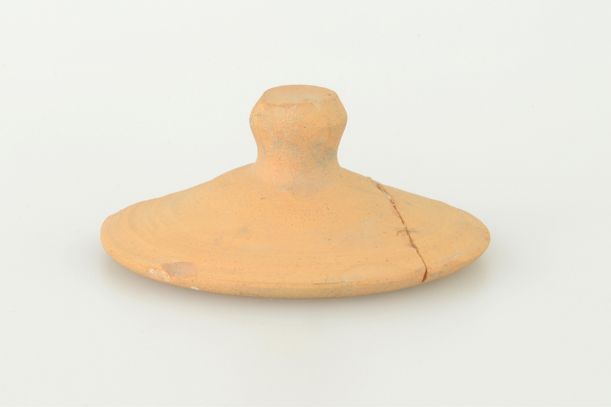 Deksel; roodbakkend; halffabricaat, biscuit, knop aan bovenzijde; productieplaats: Enkhuizen