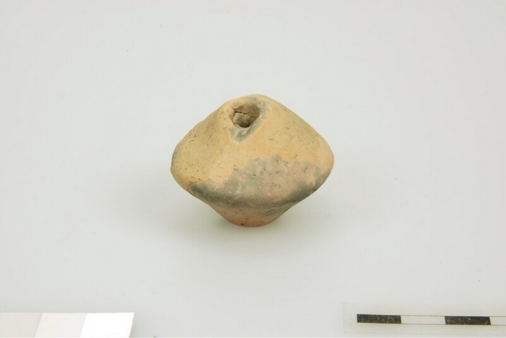 Spinklos/spinsteentje; dubbel conisch; doorboord; inheems aardewerk