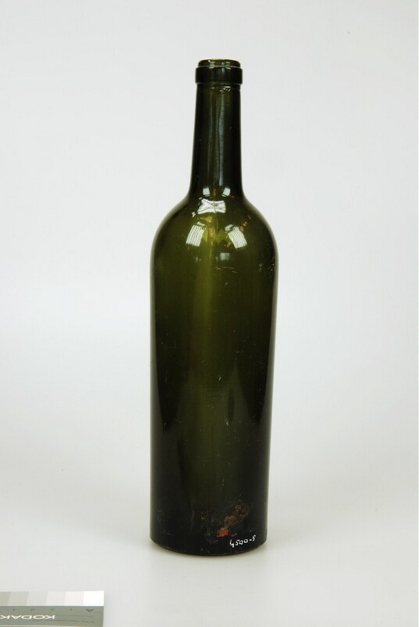 Fles; gl-fle-; donkergroen; op bodem kruis met cijfers: V.N.W. 3/4L, vondstnummer: ondbekend.