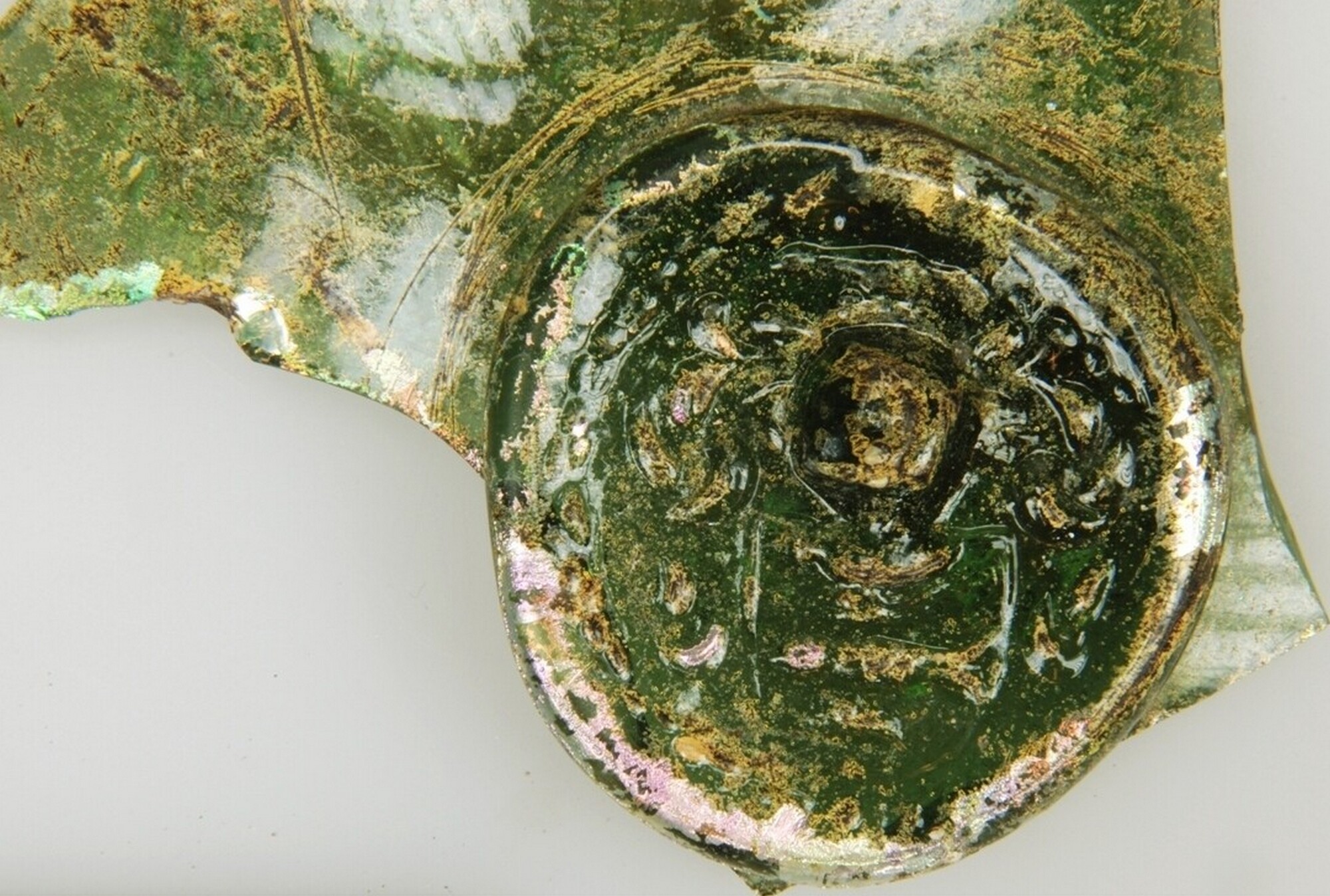 Fles; gl-fle-; groen; zegel op buik: helm en twee vliegende vissen; graaf Von Brockdorf; herkomst: Kletkamp (Sleeswijk-Holstein), Duitsland