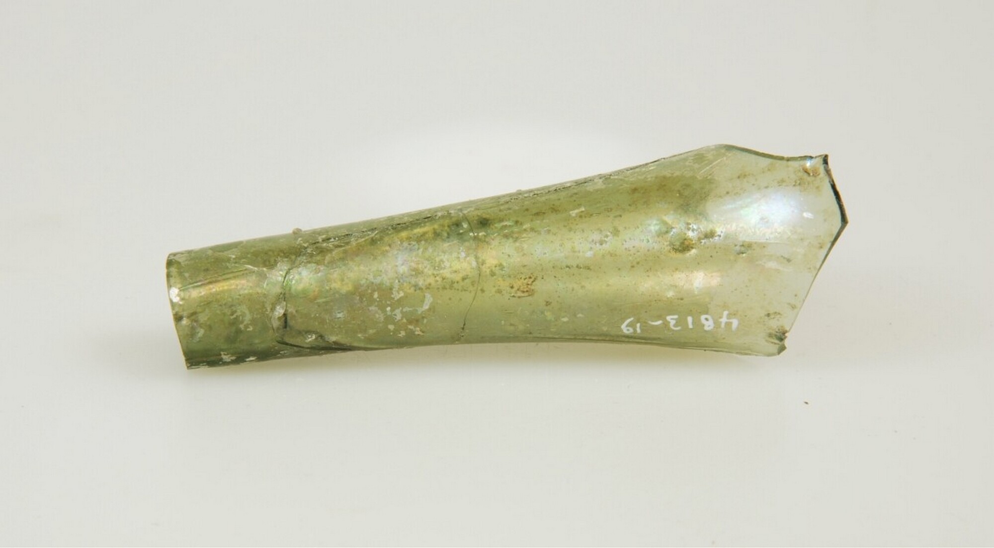 Trechter; groen; taps toelopend en aan de onderzijde recht afgesneden deel