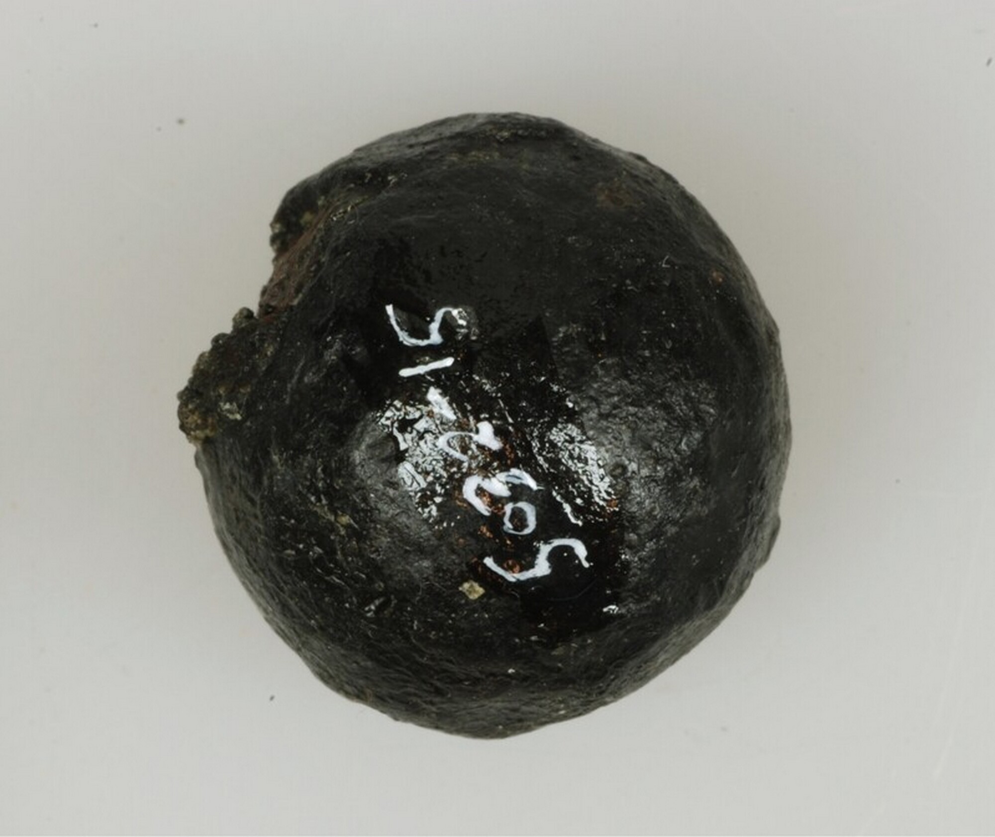 Musketkogel; gegoten; gewicht: 27,66 gram; vondstomstandigheden: detectorvondsten uit donkere ophogingslaag; datum: 3-4-1996