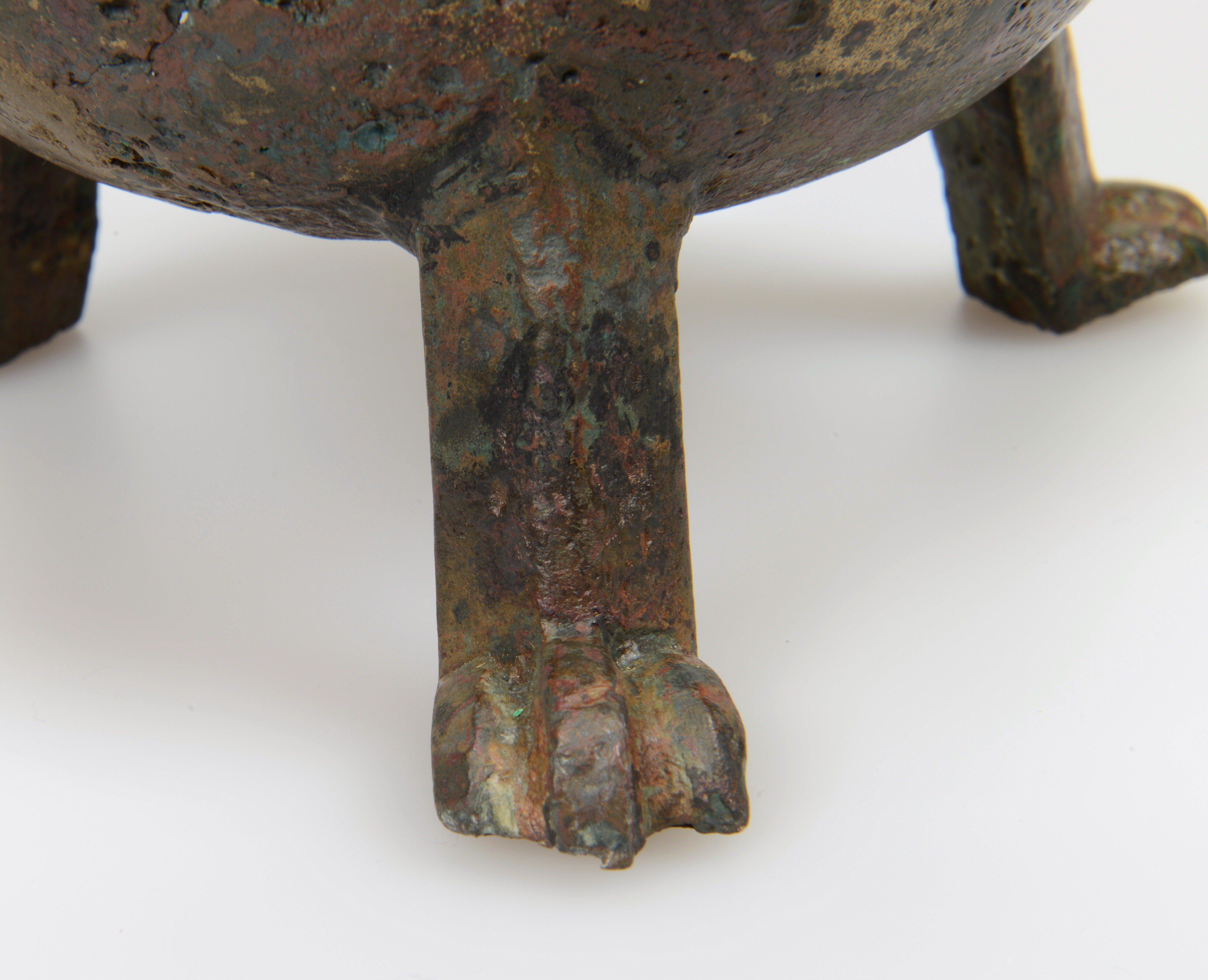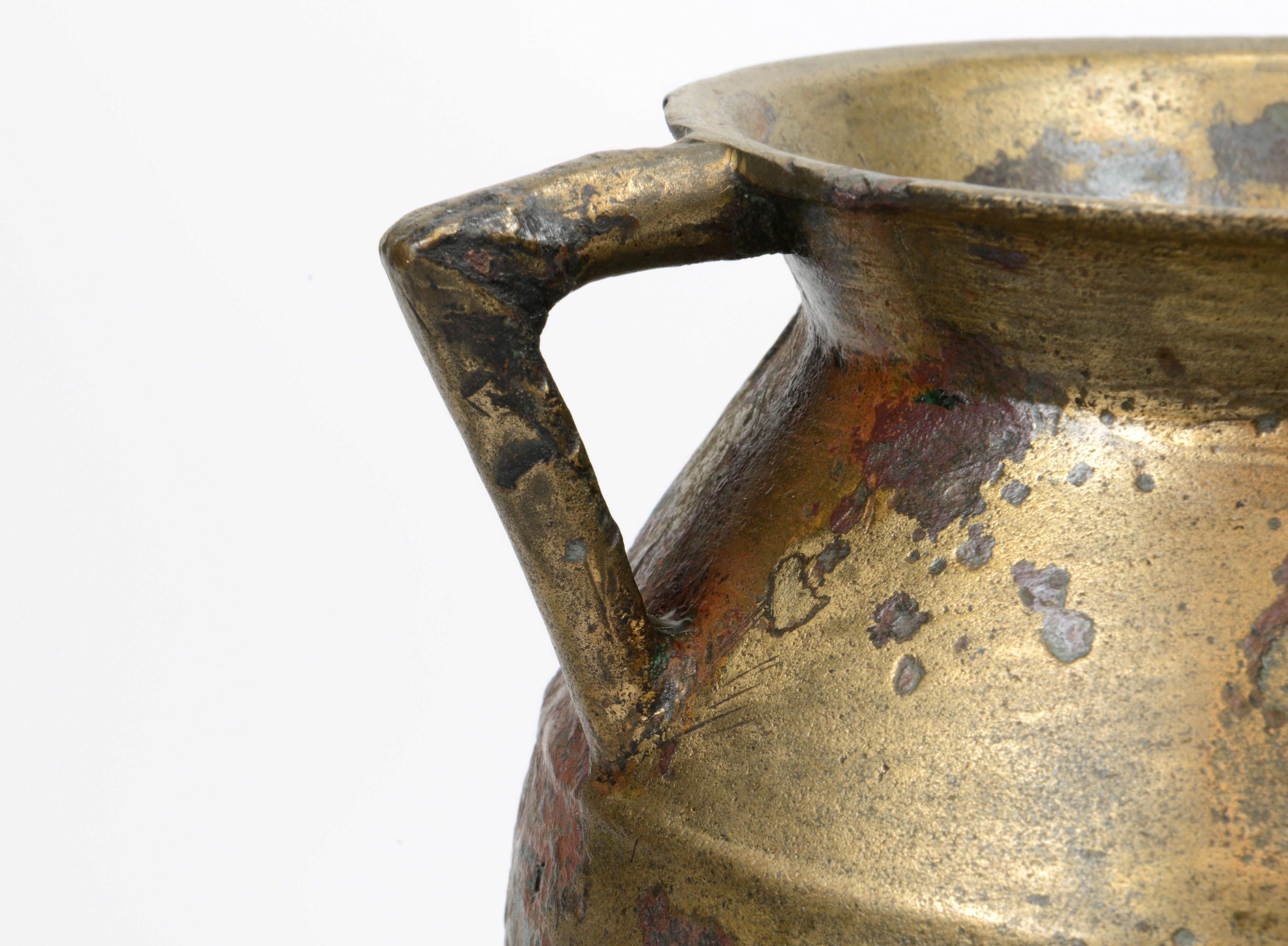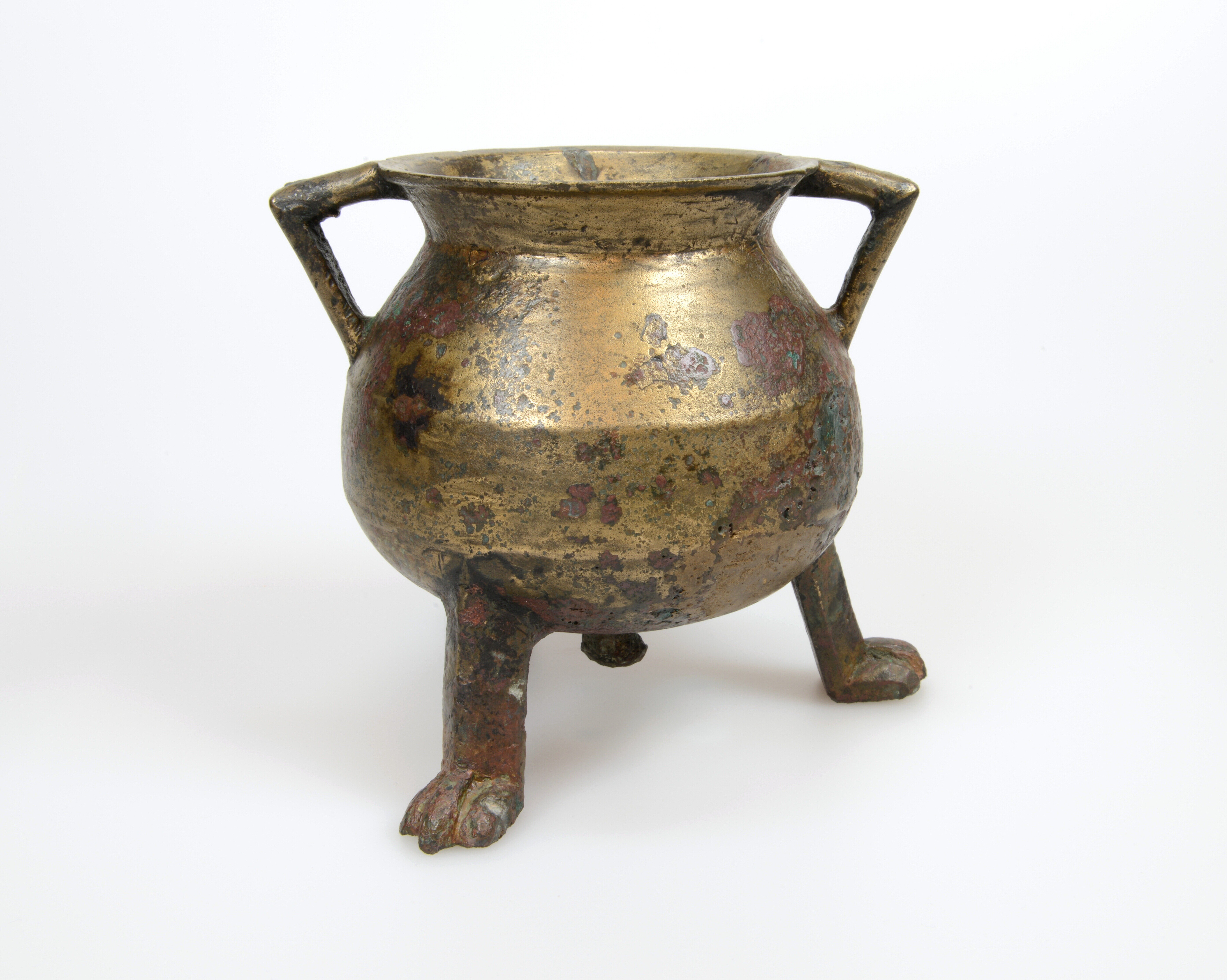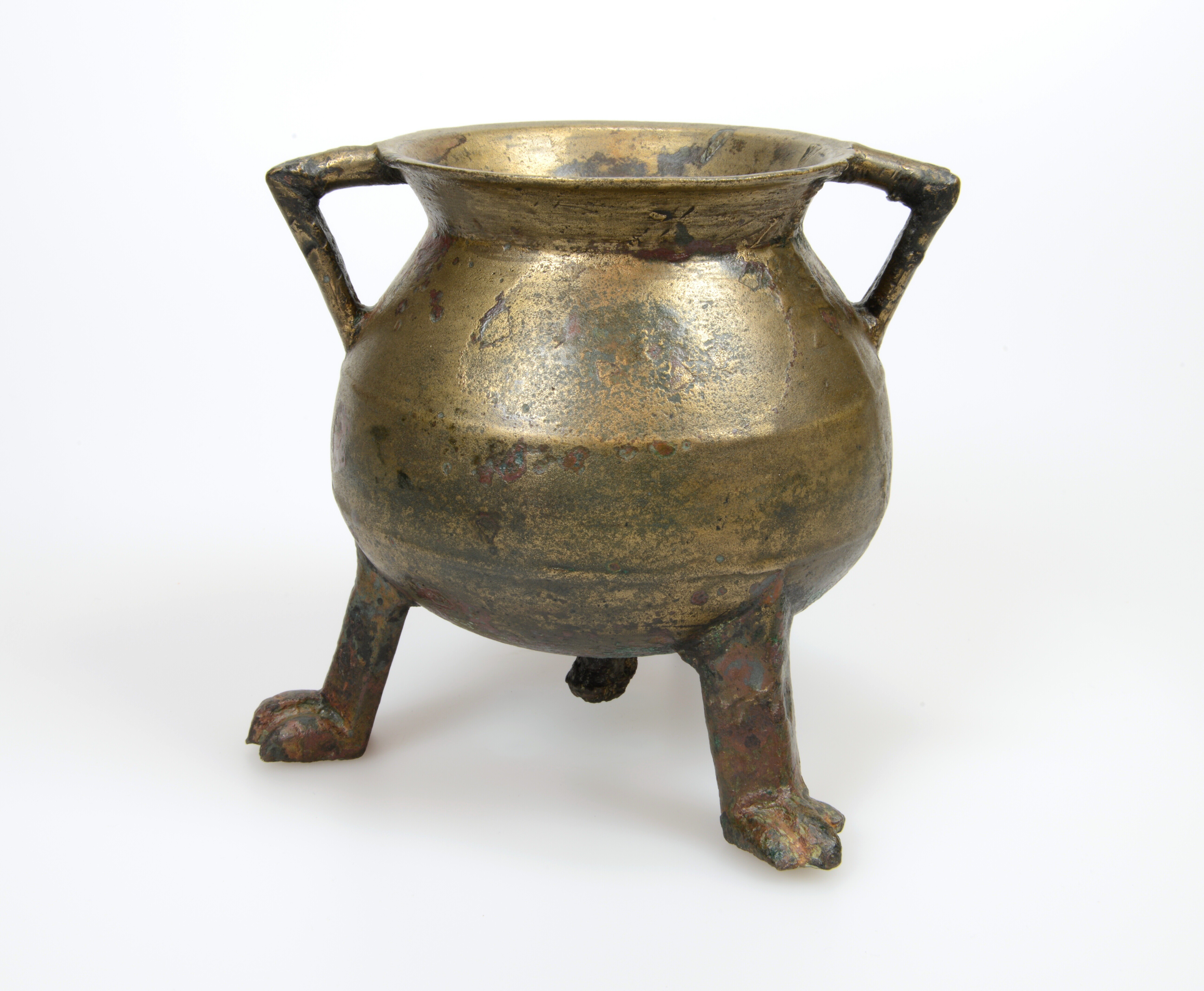 Grape; kogelvormige romp met vloeiende overgang van romp naar hals en trechtervormige verdikte rand, drie klauwpoten, twee haakoren; aan de onderzijde bevindt zich een verdikking die ten gevolge van de giettechniek is ontstaan