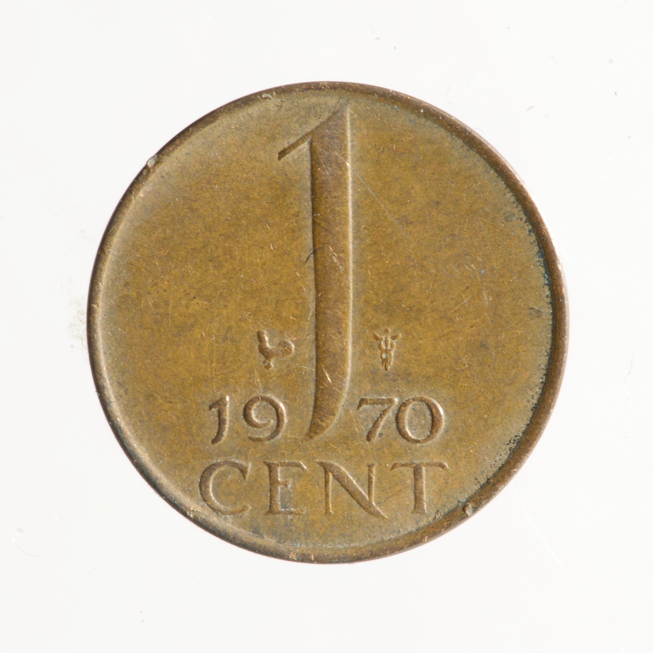 1 Cent, Nederland; Juliana; vz.: 1 cent met het jaartal 1970; kz.: buste van naar rechts kijkende Juliana met omschrift JULIANA KONINGIN DER NEDERLANDEN •; gewicht: 1.99 gram; vondstomstandigheden: losse vondst, 1970