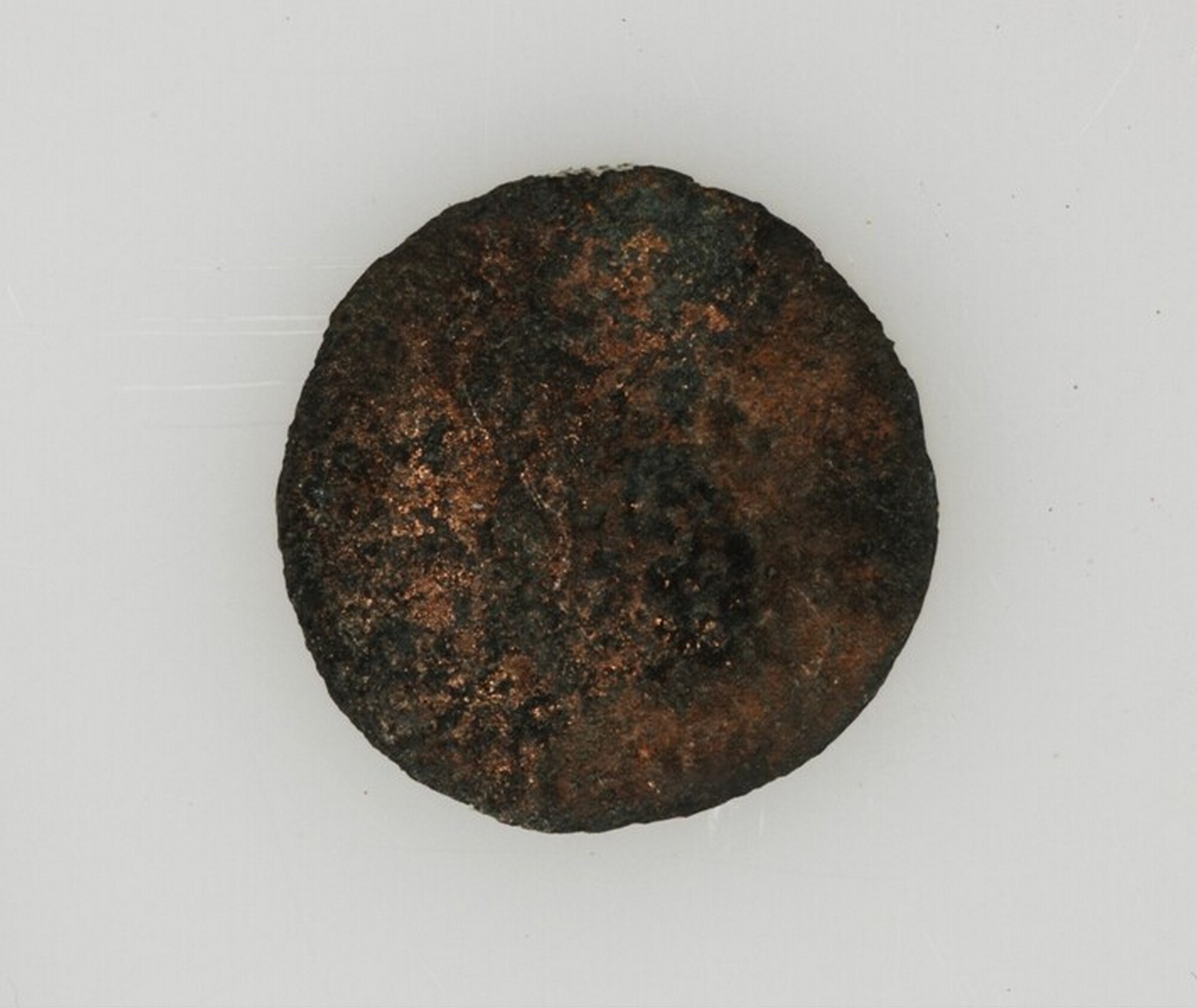Duit; Overijssel provincie (1581-1795); vz.: in vier regels: rozet (adelaar) rozet / OVER / YSSEL / 176[.]; kz.: gekroond wapenschild van Overijssel, met omschrift [VIGILATE – ET ORATE]; muntplaats: Kampen; vondstomstandigheden: vlak achter beschoeiing (18de eeuw)