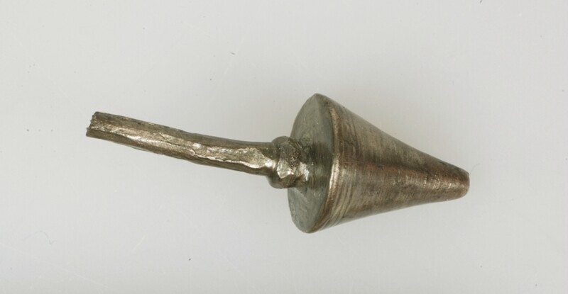 Tutulusfibula; type Cortrat of Nijmegen; massieve kegel op korte staaf met ronde doorsnede; vondstdatum: 21-01-1996; vondstomstandigheden: detector