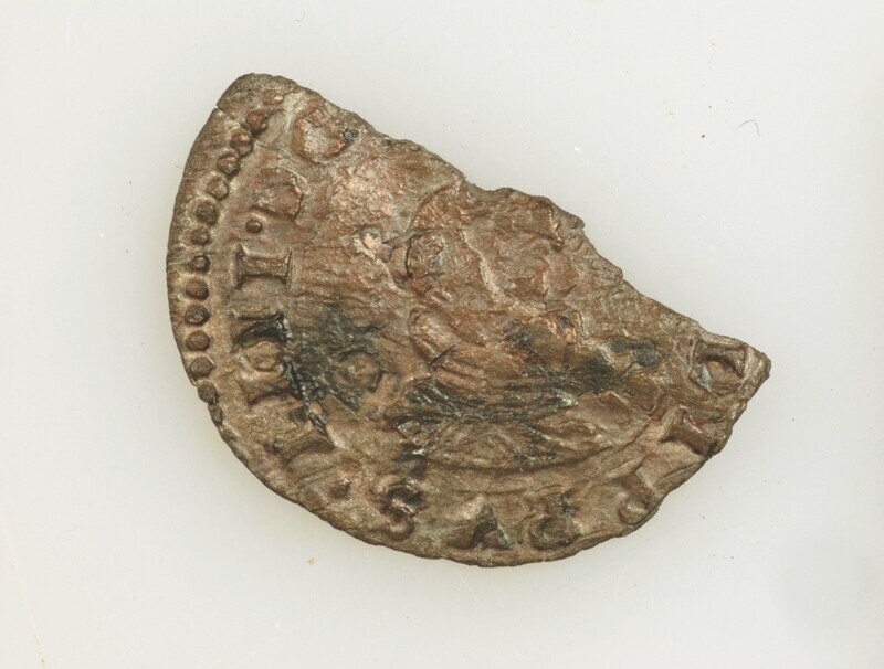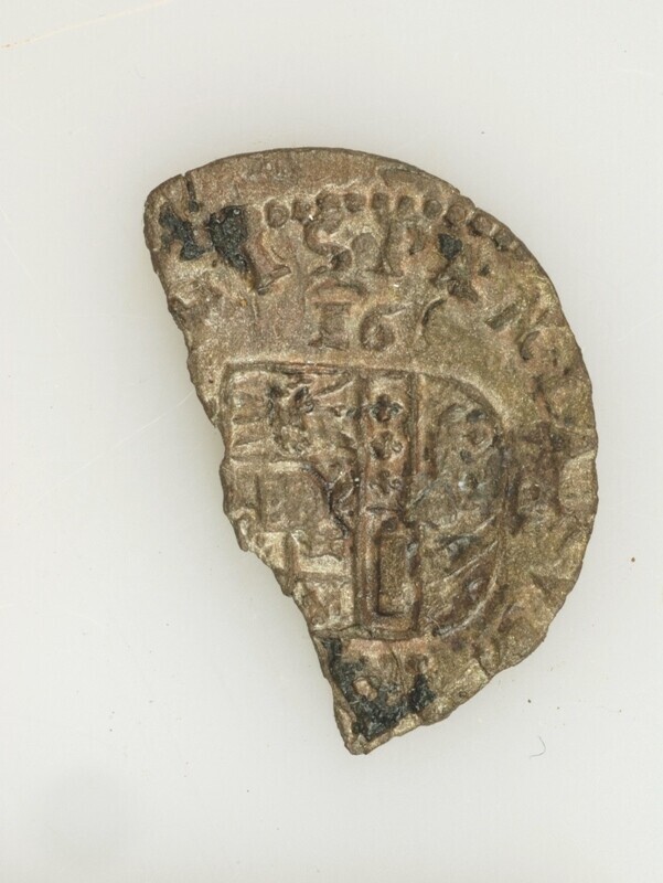 Reaal Philips IV; 16 maravedis; geslagen; halve munt met aan beide zijden een parelrand;, vz.: stadswapen met omschrift: HISPANIANVM, kz.: borstbeeld kijkend naar rechts, omschrift: LIPPVS IIII DC; gewicht: 1.97 gram; vondstomstandigheden: metaaldetector uit bouwzand (zie schets), begeleiding Purmerend, datum: 18-12-2006,