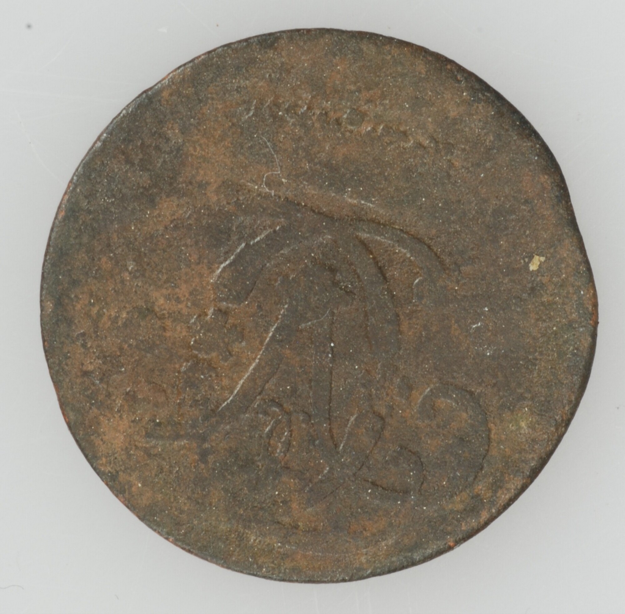 Kwart Stuber aartsbisdom Keulen; Clemens August von Bayern; vz.: 1/4 Stuber in cirkel met daaronder het jaartal 1754; kz.: gekroonde monogram; gewicht: 1.97 gram; datum: 4-12-2006; vak 3; vondstomstandigheden: metaaldetector