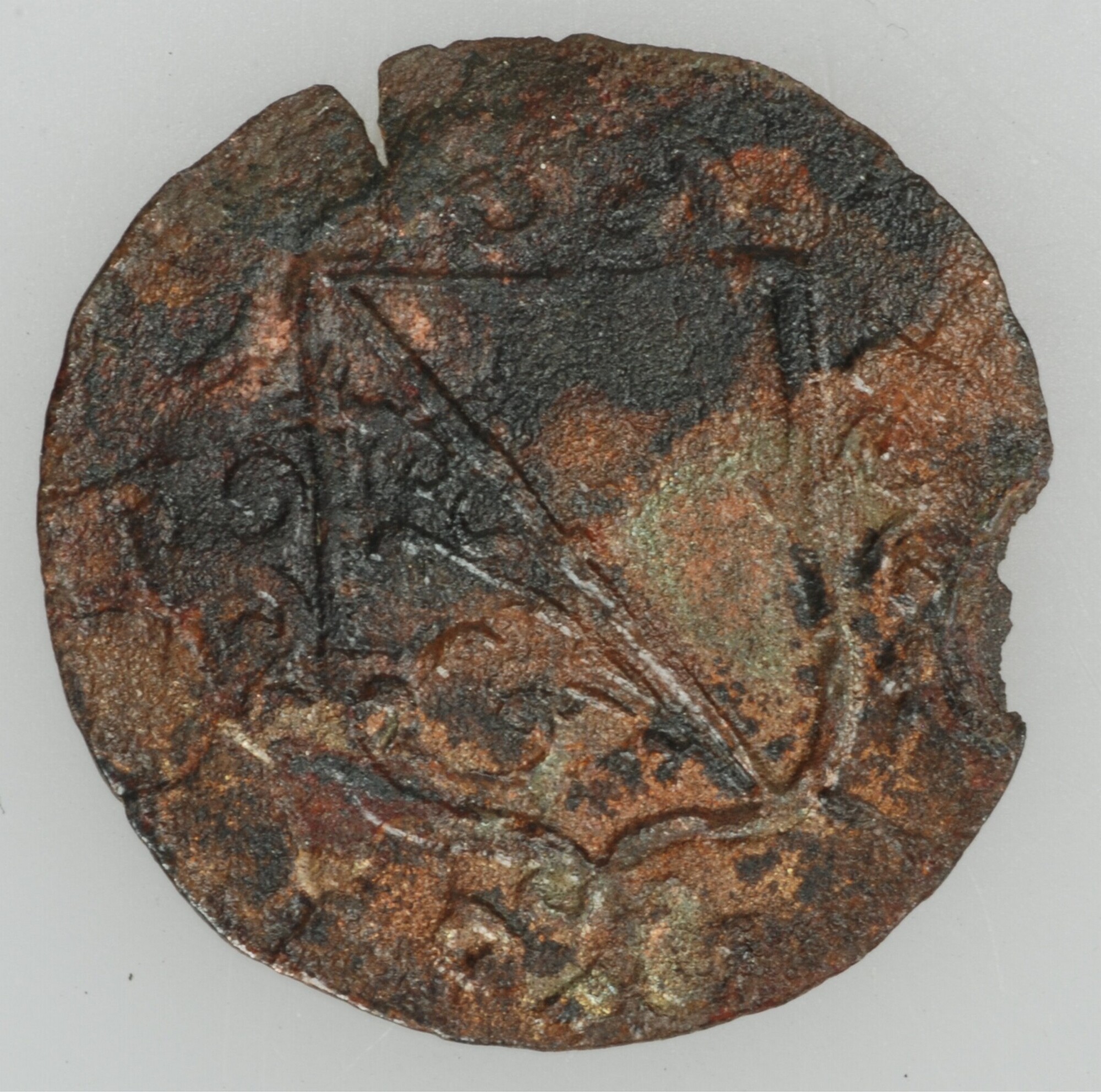 Duit Utrecht; vz.: een tulpkrans met daarin de tekst TRA IEC TVM in 3 regels en daaronder het jaartal 1626; kz.: het stadswapen van Utrecht rondom versiert met lelievormen, in het kwartier linksonder een vlamversiering; gewicht: 0.96 gram; vak 7; vondstomstandigheden: aanleg vlak