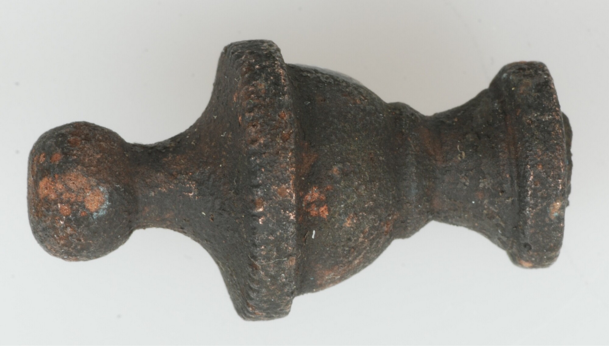 Meubel/meubilair (onderdeel); gordijnstok ornament; massieve knop