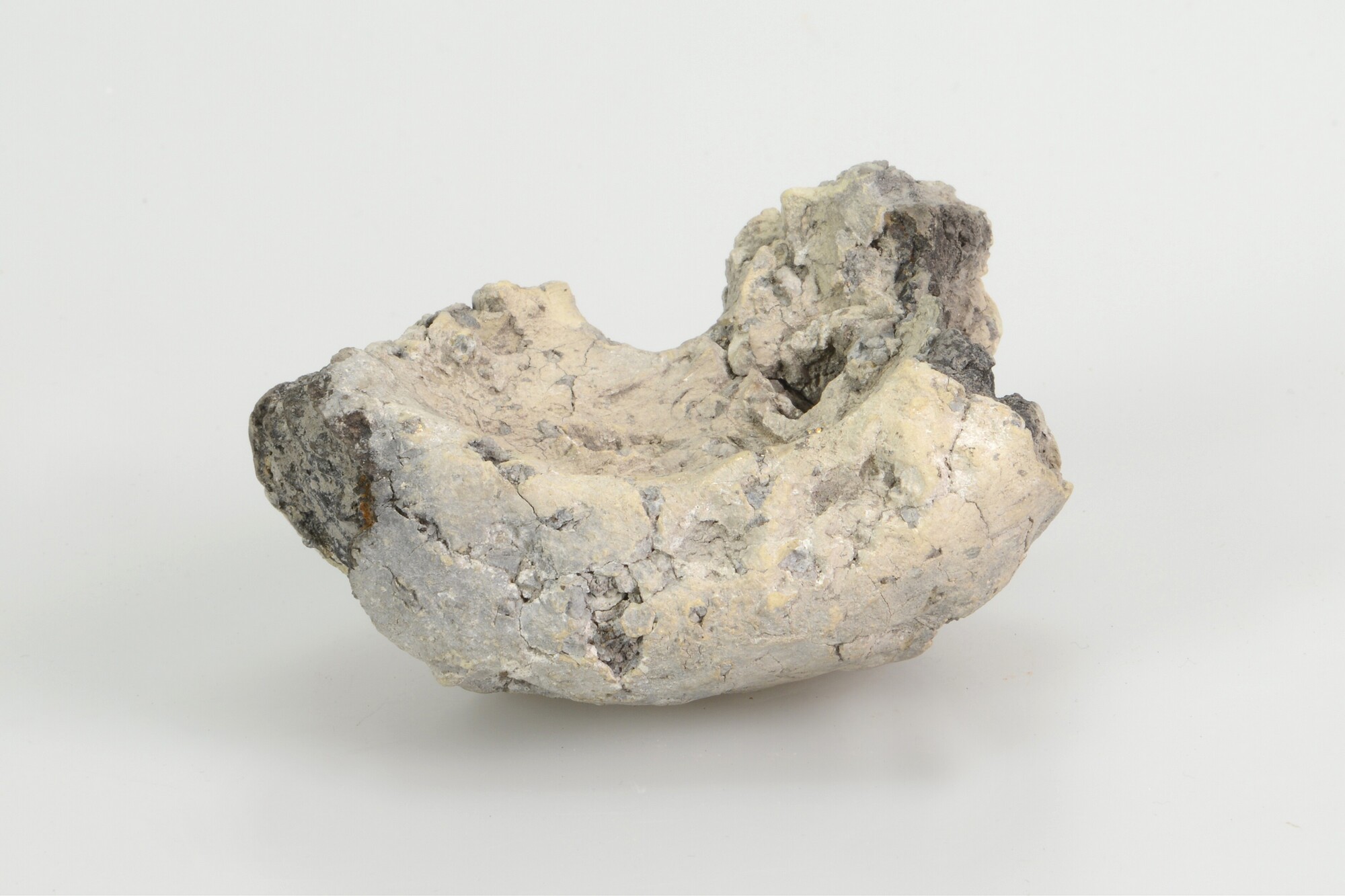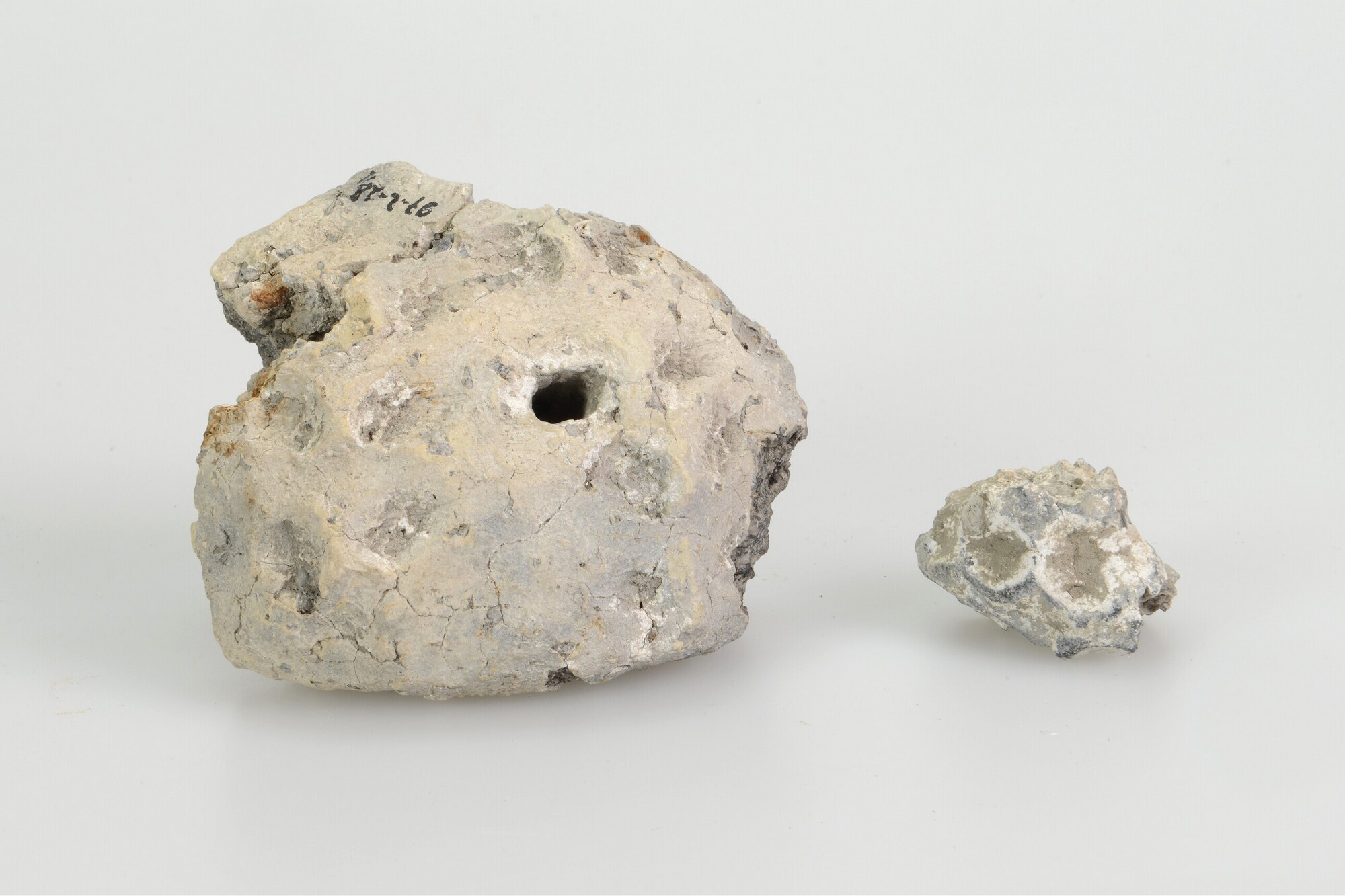 Conisch object; Hoogkarspel-Jong aardewerk; centrale doorboring met een tweetal schuine doorboringen in de wand; vingerindrukken op de wand; steengruismagering