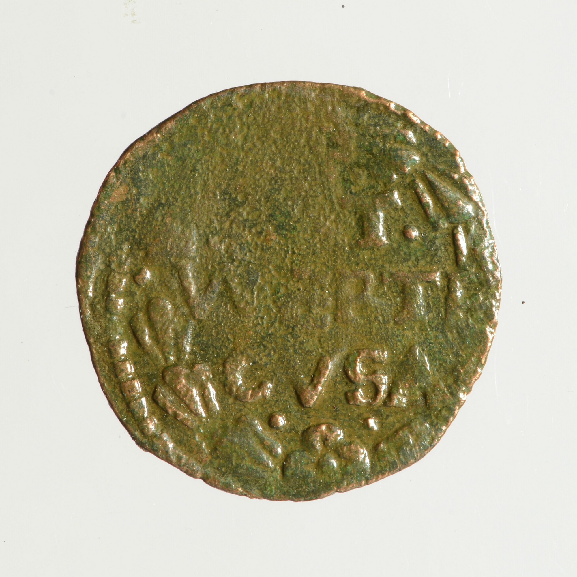 Duit; Stevensweert; vz.: binnen een tulpkrans in drie regels: [SS]T / WERTE / CVSA ; kz.: binnen een gedeeltelijke tulpkrans een gekroond wapenschild met een klauwende leeuw naar links, versierd met bezanten; muntplaats: Stevensweert; gewicht: 1.48 gram