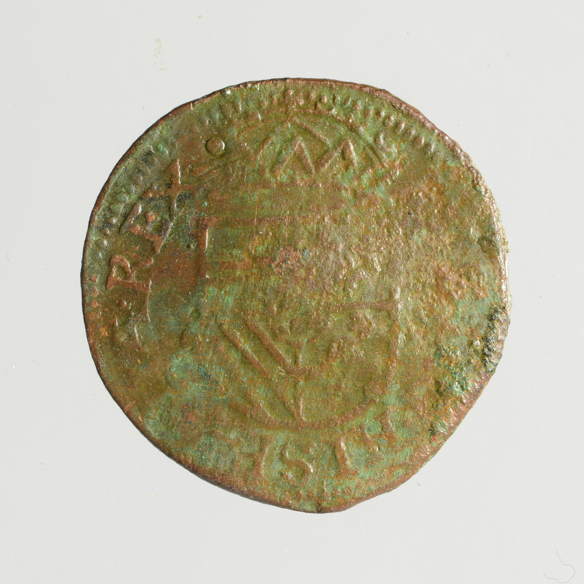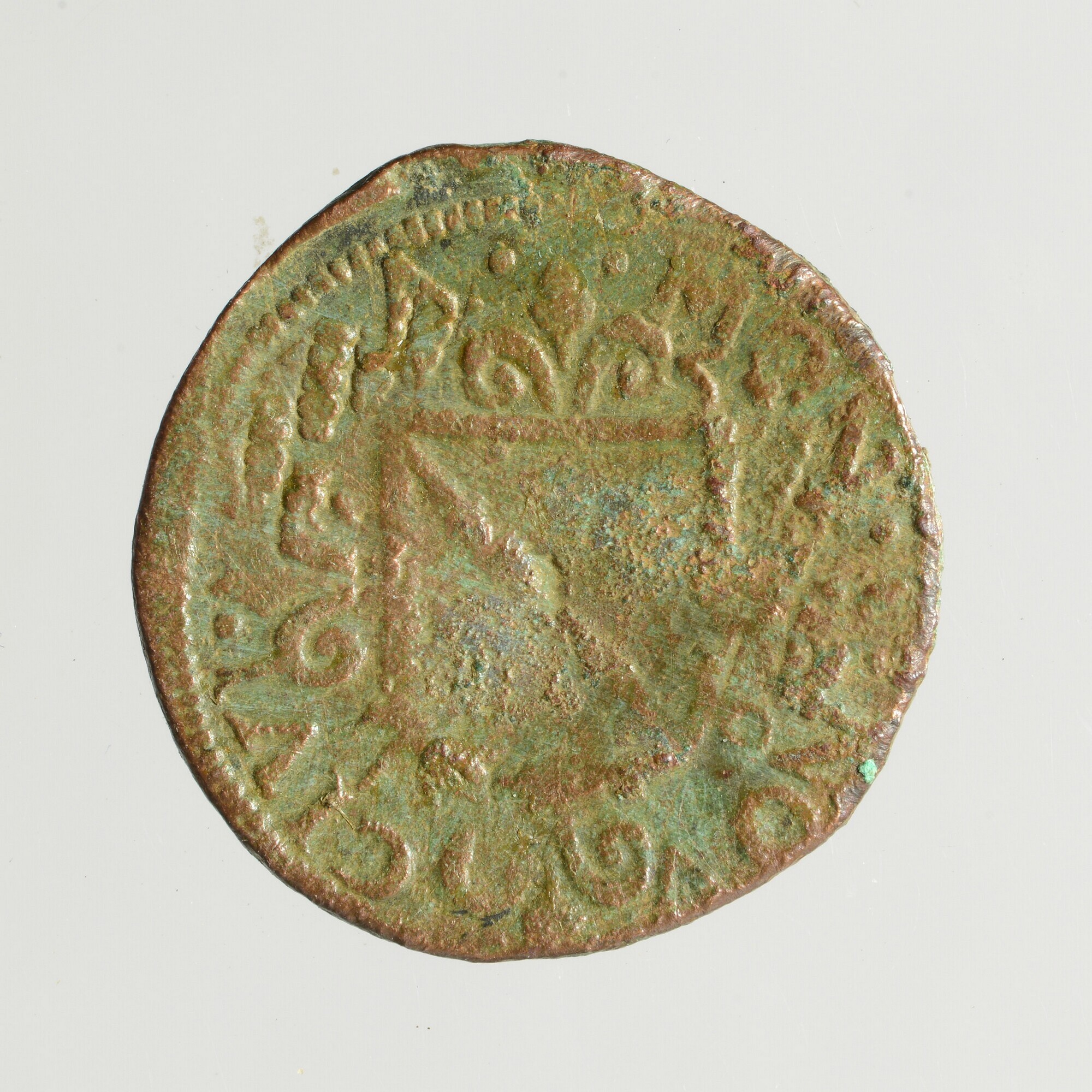 Oord; Utrecht stad; Philips II (1555-1598); vz.: gekroond wapenschild van Oostenrijk-Bourgondië met hartschild, omschrift: [+ PHS + D : G •] HISPANIA • REX; kz.: met lelies versierd wapenschild van Utrecht met op de hoeken het jaartal 1 – 5 – 7 – 9, omschrift: + MON • • NOV • / • CIVI • ...