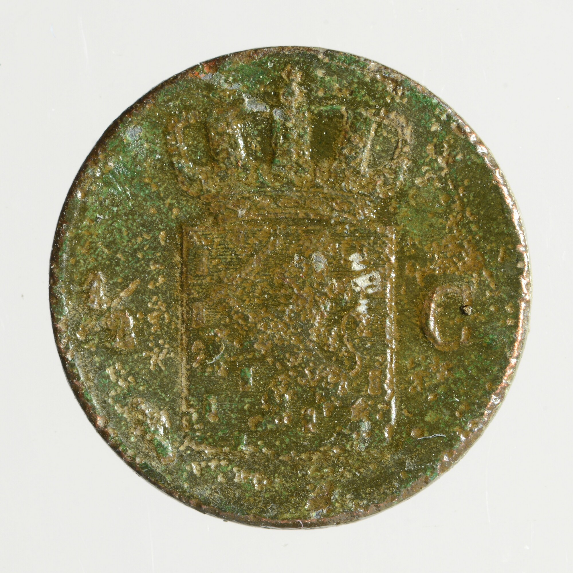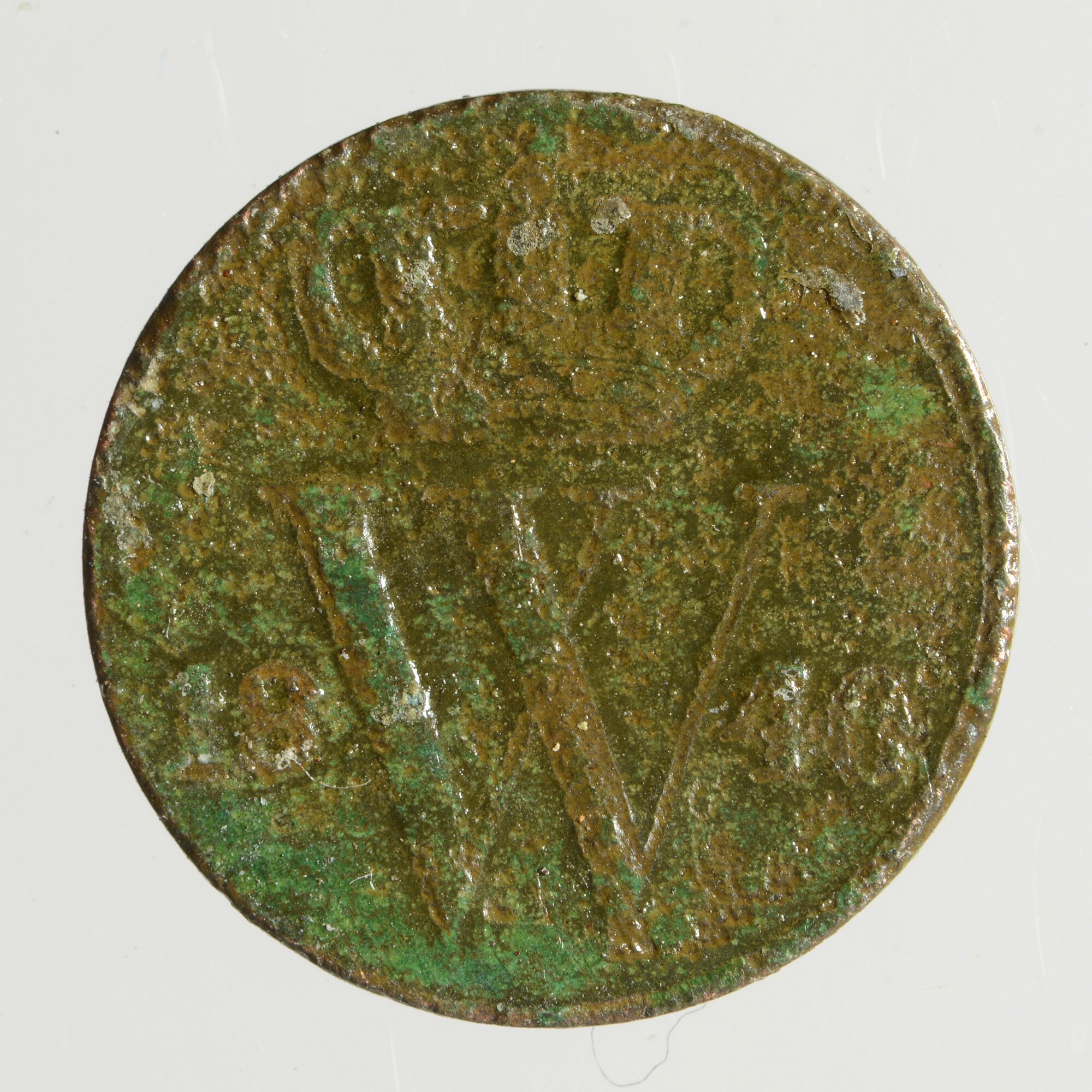 Halve cent; Nederland Koninkrijk (1813-heden); Willem II (1840-1849); vz.: gekroonde W met aan weerszijden 18 – 46; kz.: gekroond Nederlands wapen met aan weerszijden ½ – C., onder het wapen (zwaard) en (mercuriusstaf); muntplaats: Utrecht; gewicht: 1.82 gram