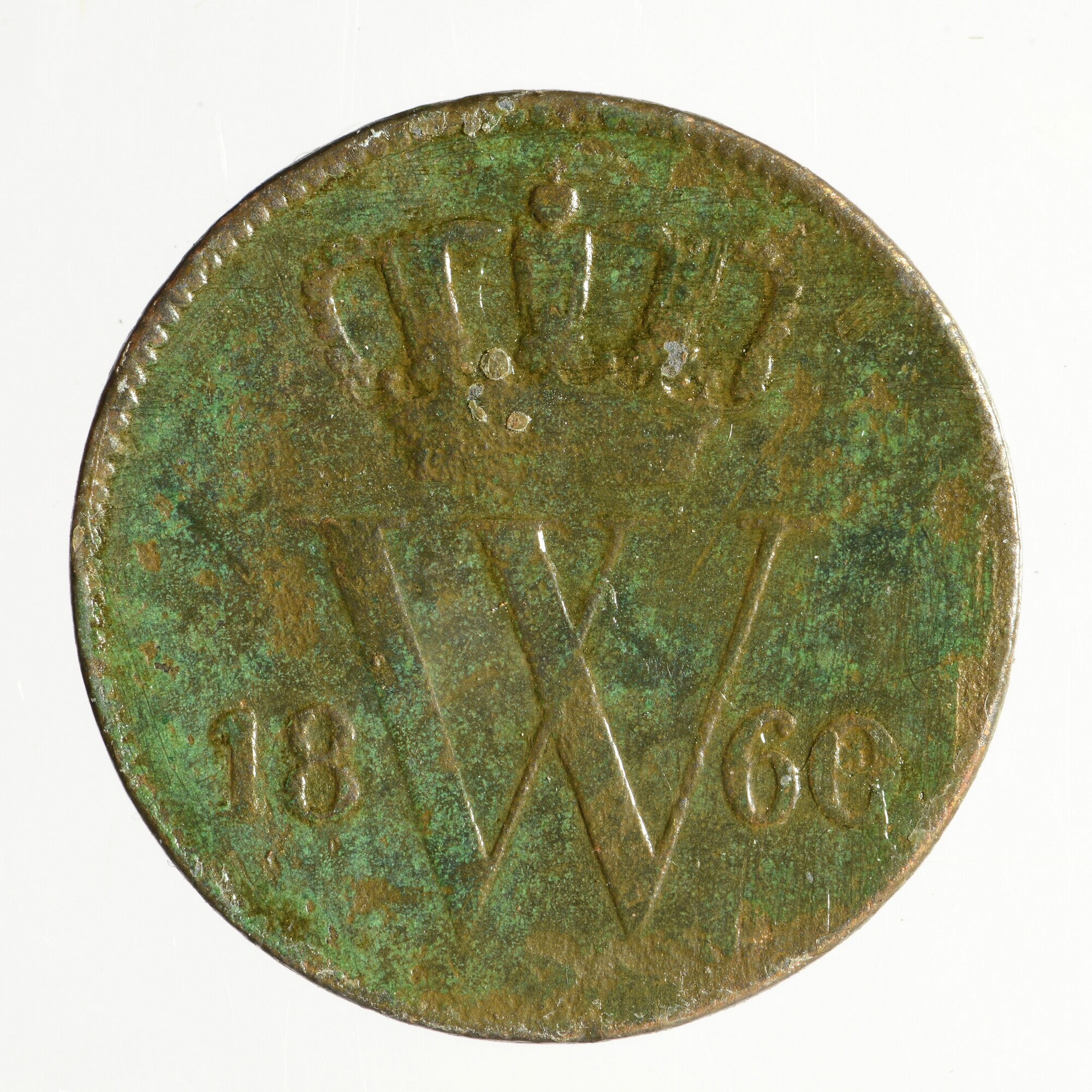 Cent; Nederland Koninkrijk (1813-heden); Willem III (1849-1890); vz.: gekroonde W met aan weerszijden 18 – 60; kz.: gekroond Nederlands wapen met aan weerszijden 1 – C.,onder het wapen (zwaard) en (mercuriusstaf); muntplaats: Utrecht; gewicht: 3.66 gram